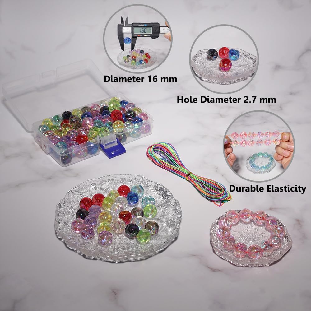1. 10 colors mixed, each color 10 pcs, 16mm diameter ,, convenient for stringing. 2. These colorful beads are made of durable acrylic, not easy to break or fade, and the rainbow-like color-changing beads are more attractive. 3. Each pack contains 10 meters of rainbow elastic cord with a width of 1mm. 4. It is suitable for making bracelets, necklaces and other DIY jewelry. 5. These colorful beads can also be used for DIY crafts, school projects, party decorations and so on, which can bring you more creativity and fun.