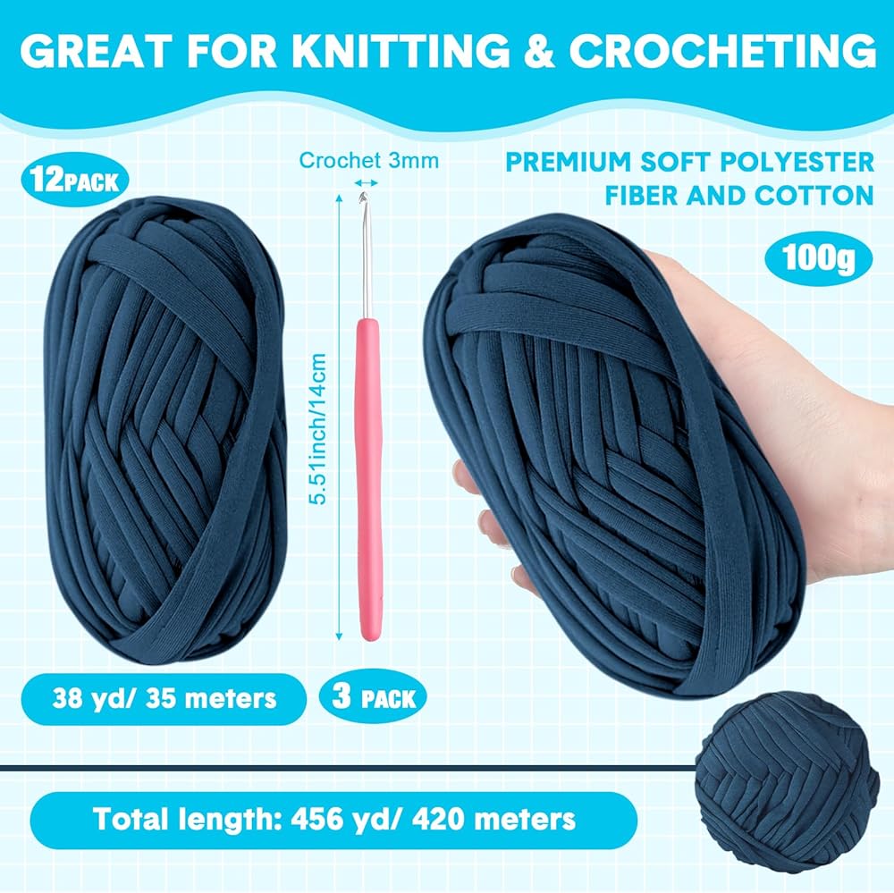 كمية العبوة: هناك 12 لفة من خيوط التيشيرت للحياكة في عبوتنا، يبلغ قياس كل منها حوالي 38 ياردة/ 35 مترًا، و456 ياردة/ 420 مترًا إجمالاً؛ بما فيه الكفاية للاستخدام والاستخدام المنزلي في الحياة اليومية، تلبي متطلبات صناعة الحرف اليدوية المختلفة