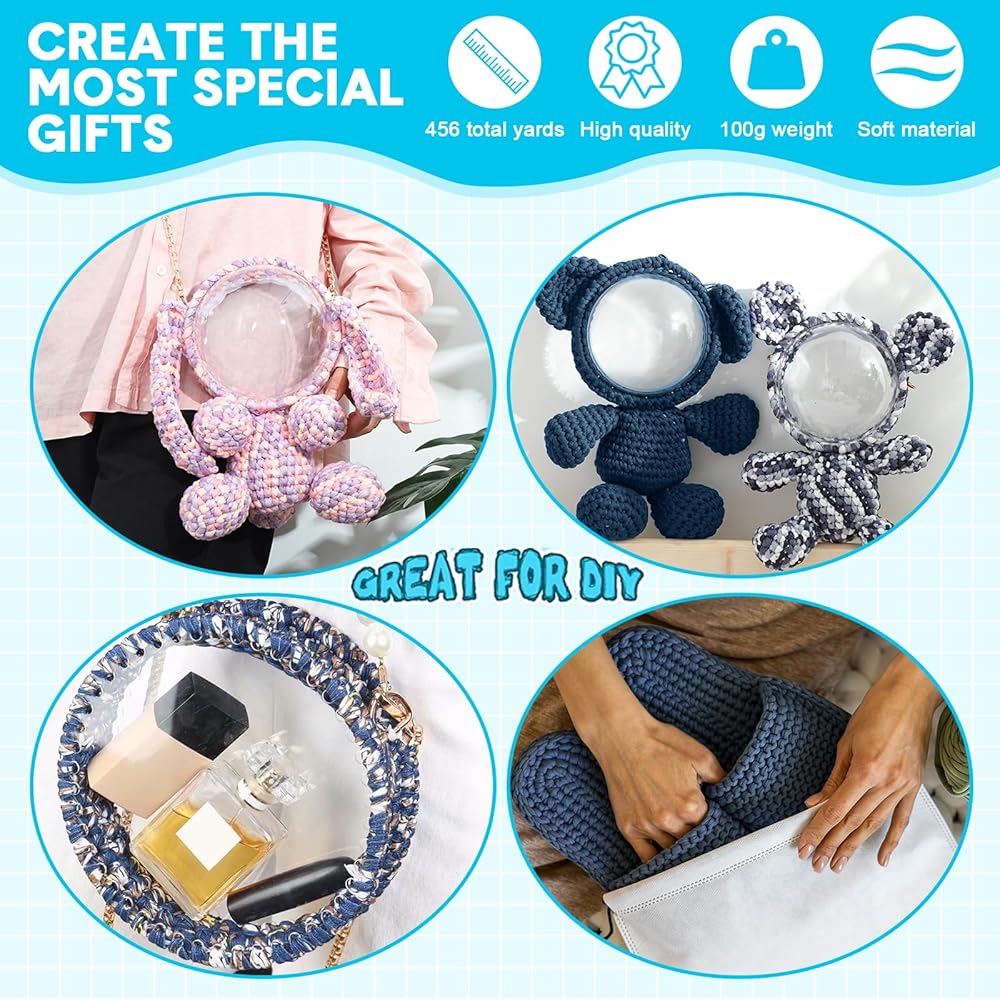 تتميز خيوط الدنيم الزرقاء المخصصة للكروشيه بأنها خفيفة الوزن وقابلة للحمل، ويمكنك حملها بسهولة، فقط ضعها في حقيبة يدك لقضاء بعض الوقت معها.