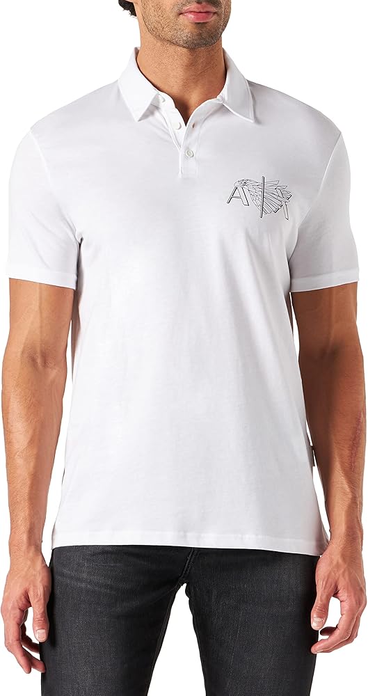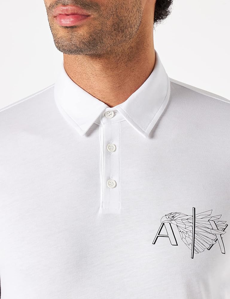 قميص بولو جيرسي للرجال بشعار النسر من A|X ARMANI EXCHANGE، أبيض، S
