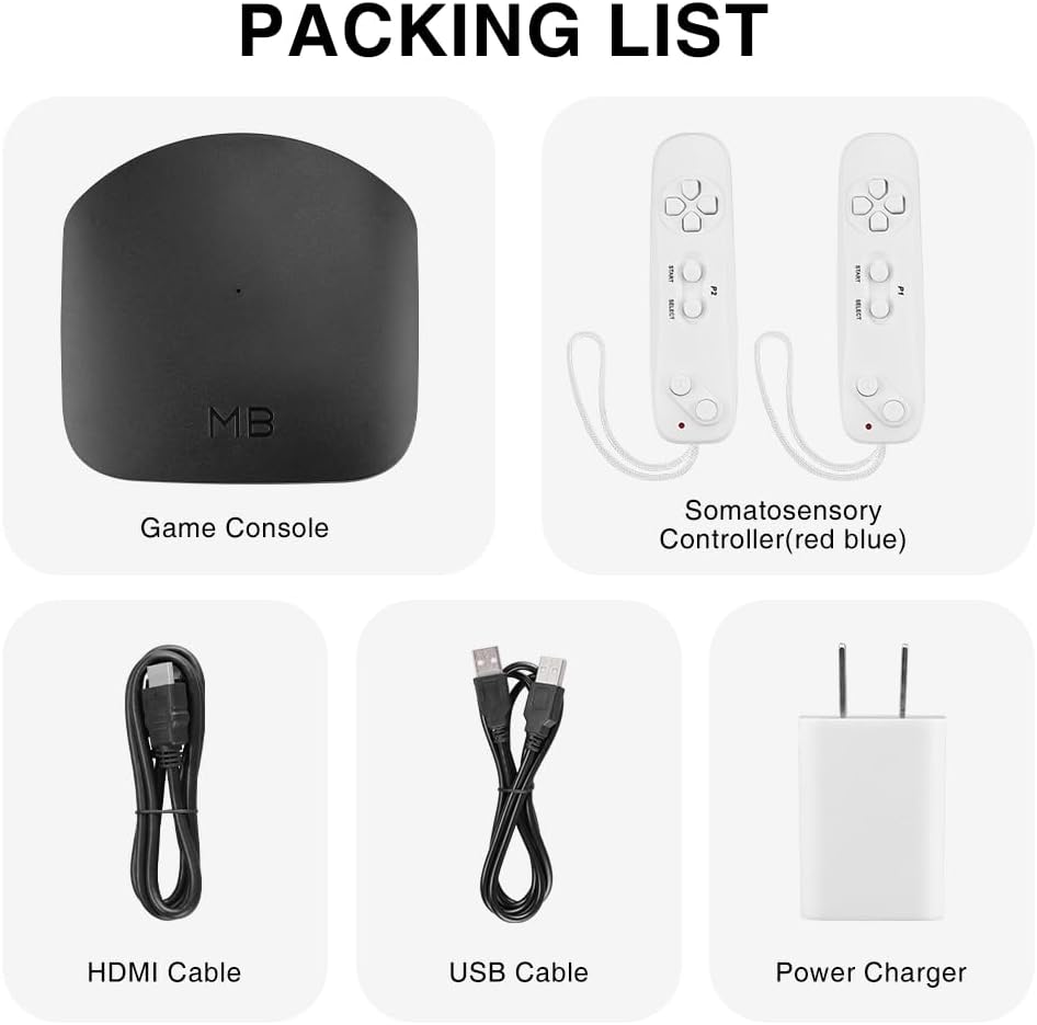 تأتي وحدة التحكم الصغيرة هذه مع كابل HDMI وUSB، فقط قم بتوصيلها بالتلفاز، ويمكنك البدء في ممارسة الألعاب. يناسب جميع أحجام التلفاز.