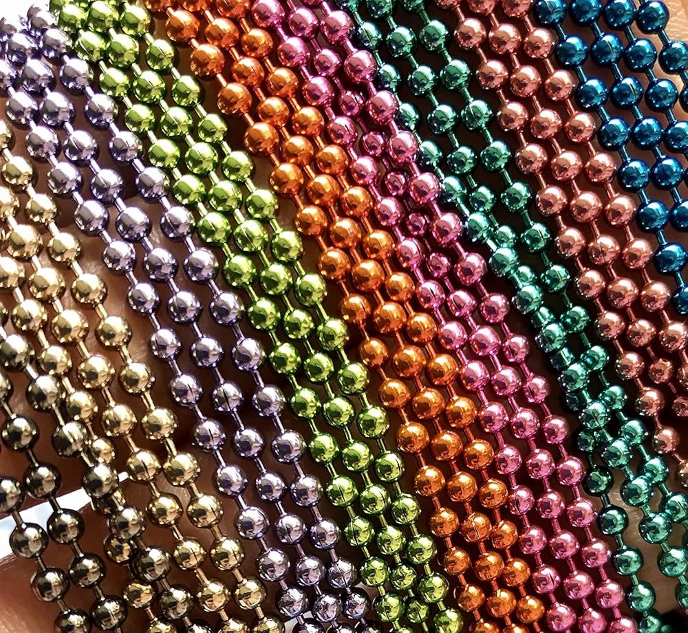 🌱المقاس: يبلغ طول كل سلسلة معدنية كروية حوالي 393 سم، وقطر الخرزة 2.4 مم، ويمكن قصها إلى أي طول تريده.