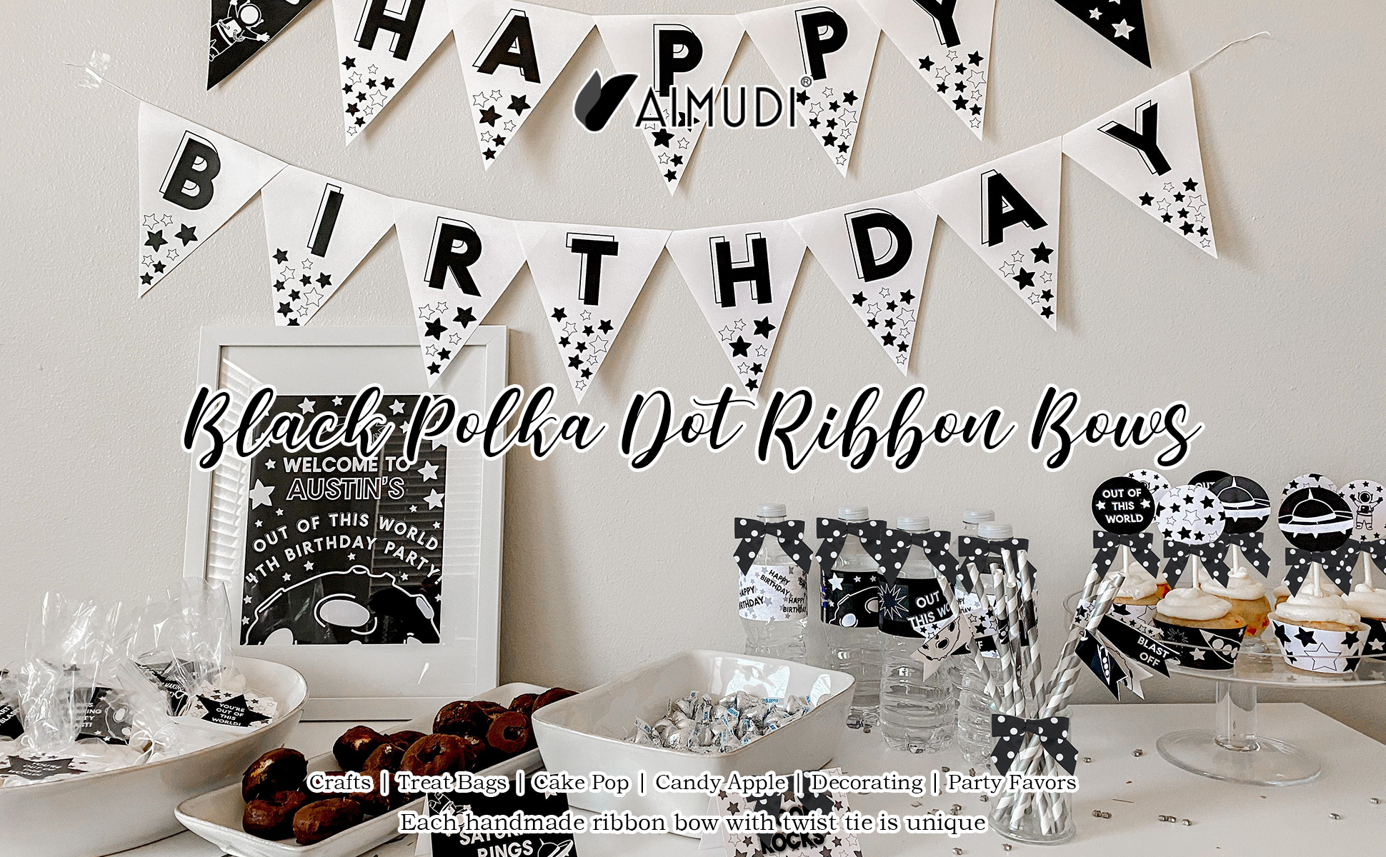 - المادة - الأقواس المزخرفة مصنوعة من شريط الحرير المضلع مقاس 2.54 سم مع مطبوعات منقطة بيضاء، نمط بسيط وكلاسيكي، تضيف بسهولة لمسة نهائية مشرقة إلى حفلتك، وحقائب الكعك، وسلة الهدايا.