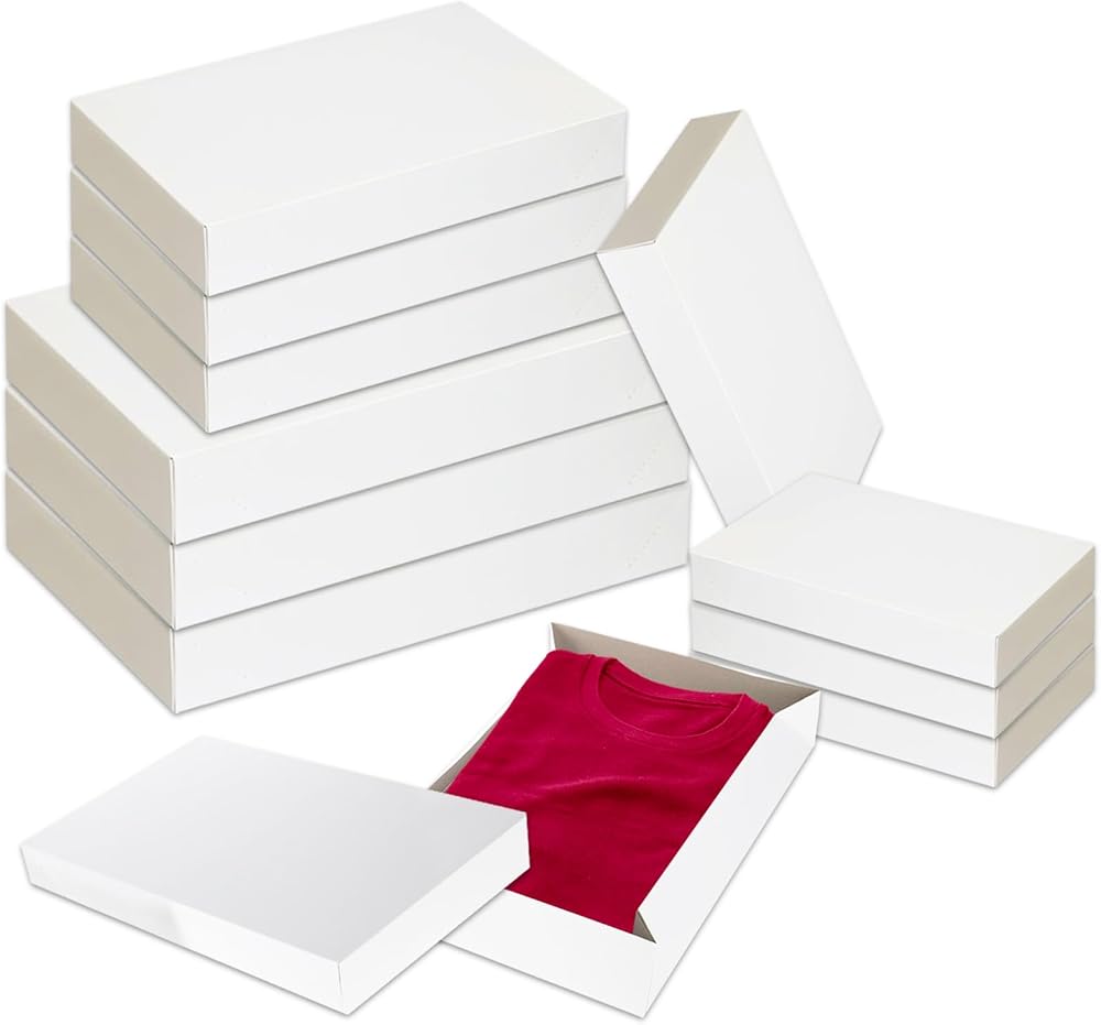 Crenstone White Gift Boxes Bulk for Gifts ~ 10 Pack Large Boxes with Lids for Wrapping Presents Christmas, Holidays, Birthdays | 17.25" x 11.34" x 2.5" (10). Each Large gift box measures 17.25 in. x 11.34 in. x 2.5 in. when assembled. Folds flat for easy storage and are great for buying in bulk. Create a stunning gift presentation for clothing, small toys, books, or other gifts by adding tissue paper, wrapping paper, or a simple ribbon. Great to put your own design on the boxes as well! Perfect for Christmas gifts, Birthdays, Valentines, Easter, Anniversary, Graduation, Baby Shower, or any celebration! Sturdy shirt gift boxes with lids crafted from high-quality recycled paper materials.