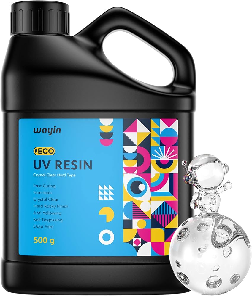 راتنج الأشعة فوق البنفسجية - ترقية Wayin 500 جرام من راتنج الأشعة فوق البنفسجية الصلب الشفاف من الكريستال البيئي، غراء راتنجات الإيبوكسي فوق البنفسجي لعلاج أشعة الشمس من الراتنج المنشط للمجوهرات المصنوعة يدويًا، والحرف اليدوية، والطلاء والصب