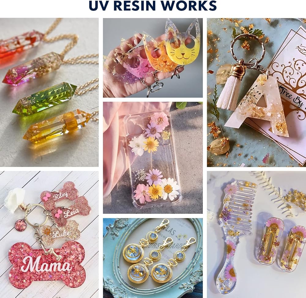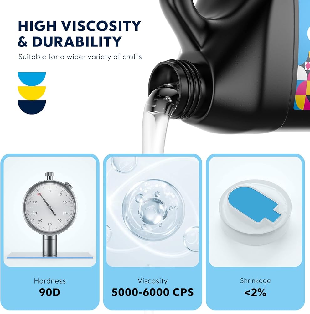 💎【ممتاز - مقاوم للماء وصلابة عالية】يعمل راتنج الإيبوكسي بالأشعة فوق البنفسجية على معالجة الكريستال الشفاف، شديد اللمعان، زجاجي ومقاوم للماء، يمكن أن تصل الصلابة إلى D80، وهو مضاد للخدش، ومضاد للبقع، وانكماش منخفض، ومقاوم للأصفرار. كما أن خصائص التسوية الذاتية والتفريغ الذاتي تساعد في عملية الصياغة بشكل أسهل بكثير.