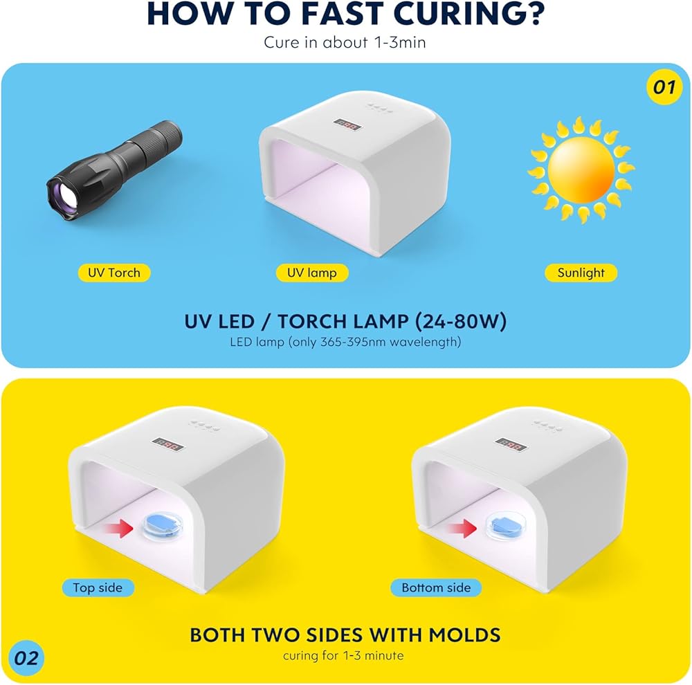 💎[علاج سريع - وفر وقتك] راتينج الأشعة فوق البنفسجية الشفاف الخاص بنا جاهز للاستخدام ويمكن علاجه بسرعة باستخدام مصباح الأشعة فوق البنفسجية (36 وات / طول موجة 365 - 395 نانومتر فقط) في دقائق. يرجى التأكد من أن النموذج الخاص بك نظيف، ولا يحتوي على زيت أو مواد غريبة أخرى قبل الاستخدام وأنك تستخدم قوالب شفافة. وفقًا لسمك القالب، يتم معالجة كلا الجانبين (الجانب الأمامي والجانب الخلفي) لمدة 1 ~ 2 دقيقة. ستحصل على حرف مثالية من راتنجات الإيبوكسي بالأشعة فوق البنفسجية وستجعلك مذهلًا وتبهر الآخرين!