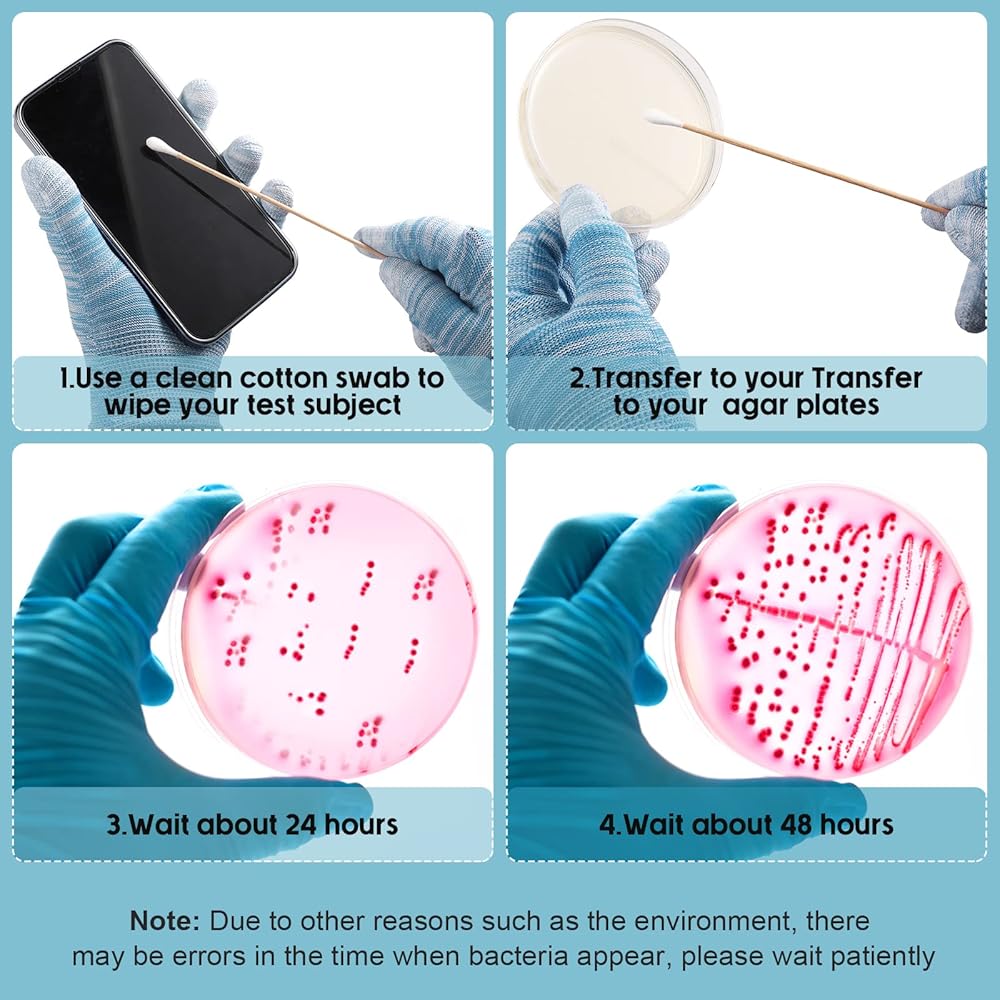 Quality and Reliable Material: the petri dishes with agar and swabs are made of quality material, which is reliable and safe for people to use, not easy to fray or break, giving you a nice use experience