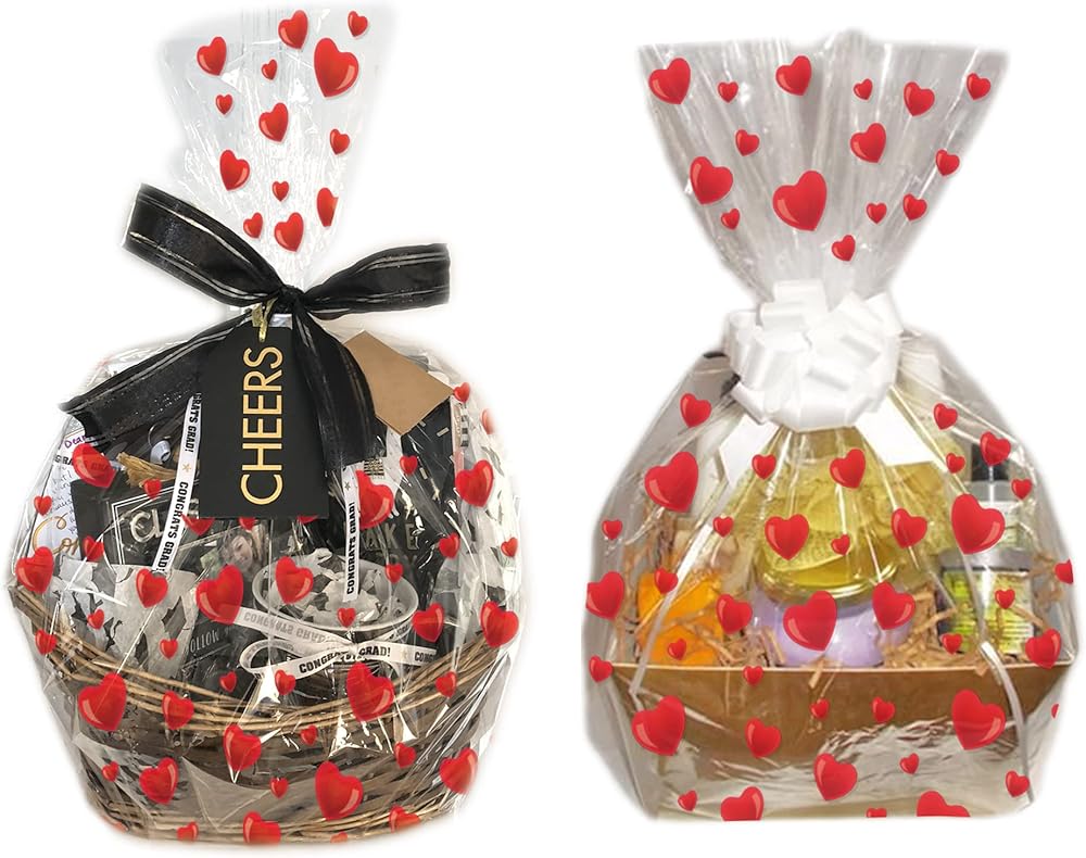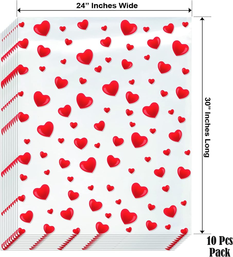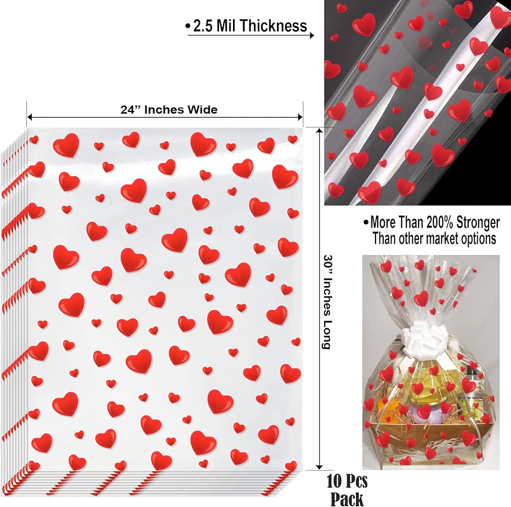 10 قطع. حقائب كبيرة جدًا | يبلغ مقاس كل حقيبة سيلوفان بتصميم قلب 60.96 سم عرضًا × 76.2 سم طولاً. عرضها وطولها الكبير مثالي لسلال الهدايا ذات الحجم المتوسط إلى الكبير!