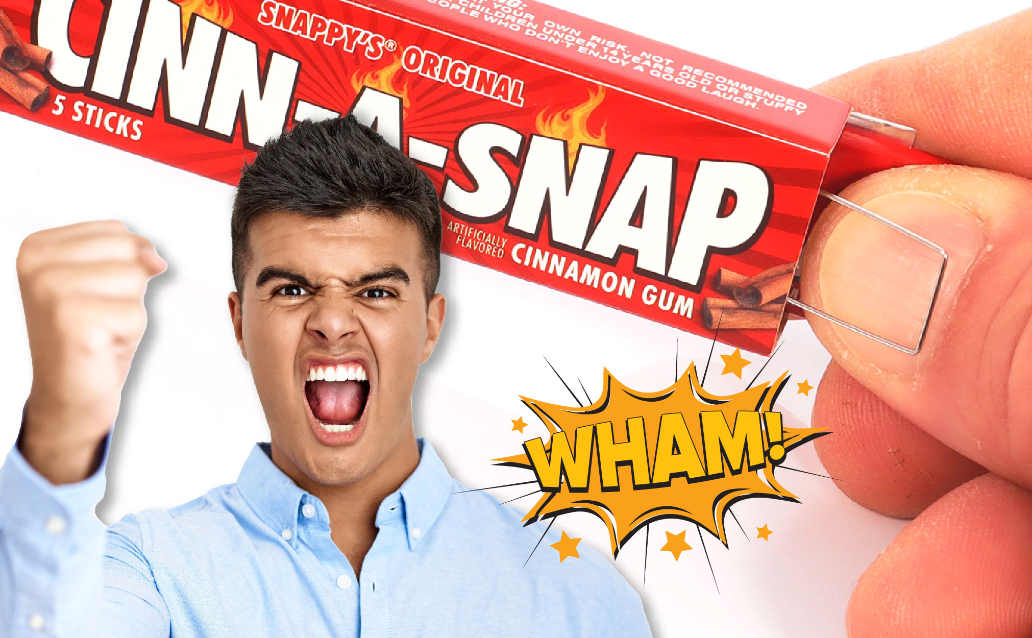 • كيفية صدمة ضحيتك – اجعل صدمتك تسحب العلكة جاهزة مع الحفاظ على وجه مستقيم، اسأل ضحيتك إذا كان يرغبون في بعضها. ثم انتظر ببساطة لتشاهد تفاعلهم المضحك حيث يسحب عصا من العلكة وهمية ويحصلون أصابعهم بشكل سريع! "اووش!"