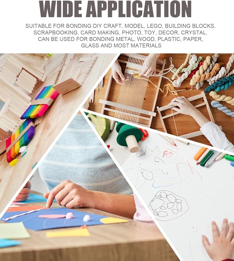【استخدام واسع】مناسب لربط الأعمال اليدوية والنماذج والليغو ومكعبات البناء وسجل القصاصات وصناعة البطاقات والصور واللعبة والديكور والكريستال. يمكن استخدامها لربط المعادن والخشب والبلاستيك والورق والزجاج ومعظم المواد. الغراء الحرفي شفاف وعديم اللون ومتين للغاية. إنها مناسبة جدًا لصنع الحرف اليدوية، وإصلاح الأشياء اليومية، وما إلى ذلك. الغراء مناسب لجميع أنواع الأسطح غير المستوية والخشنة والعمودية.