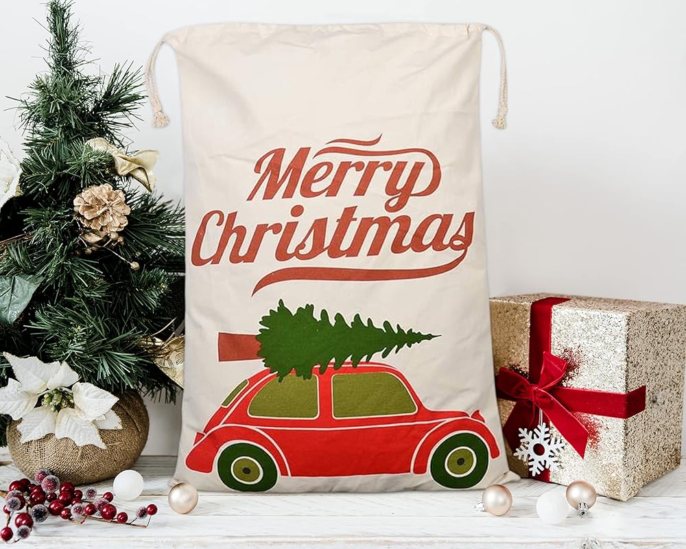 تحتوي كل عبوة على حقيبة هدايا سانتا واحدة (1) قطنية قابلة لإعادة الاستخدام مع إغلاق برباط.