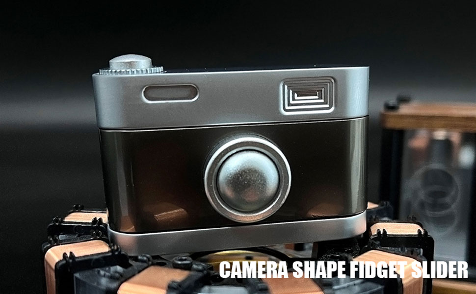 مجموعة متنوعة من اللعب - يمكن دفع الهيكل المعدني في الجزء الأوسط من الكاميرا والجسم المعدني في الأسفل لأعلى وأسفل. عندما تضغط على منزلق فيدجيت هذا، سيكون هناك قوة امتصاص من الداخل، مما يمنحك ردود فعل قوية. تنتج هذه العملية صوت نقر معدني هش للغاية. يمكن الضغط على الزر الموجود في الزاوية اليسرى العليا من الكاميرا والزر الموجود في قسم العدسة. يمكنك القيام بذلك مرارًا وتكرارًا، وهو أمر يسبب الإدمان لدرجة أنه لا يمكنك التوقف.