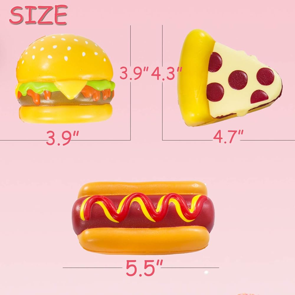 - ✔3pcs in one package : hamburg (10cm/3.9")88g , hot dog (14cm/5.5")59g , pizza (12cm/4.7")52g.