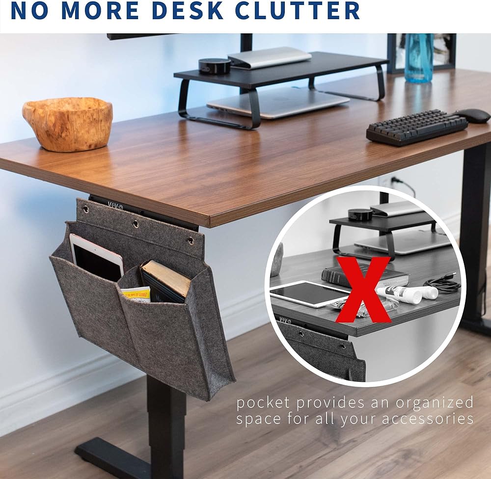 تخلص من فوضى مساحة المكتب وكن منظمًا مع جيب التخزين الجانبي للمكتب (DESK-AC08PG) من فيفو! هل سئمت من تراكم المفكرات الإضافية والأقلام وكابلات الشحن وغيرها من الأشياء التي تشغل مساحة مكتبية قيمة؟ اتخذ خطوة نحو عقل واضح وطاولة نظيفة، مما يزيد من إنتاجيتك مع حل تخزين مكتب مخفي بسيط. تصميم الجيبين رائع لتنظيم مستلزمات المكتب ومستلزمات الحرف اليدوية وأكثر من ذلك، مما يجعل من السهل العثور على ما تبحث عنه لاحقًا دون الحاجة إلى البحث في درج لا نهاية له. يتم تركيب الجيب أسفل حافة مكتبك مباشرةً باستخدام دعامة فولاذية صلبة، مما يحافظ على أغراضك الأساسية في متناول اليد. تعمل بشكل رائع للمساحات المكتبية وطاولات الخياطة ومناطق الحرف اليدوية والفصول الدراسية والمزيد!