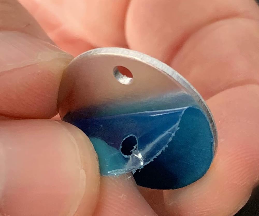 غطاء واقي: علامات معدنية من الألومنيوم مع غطاء واقٍ على جانب واحد وفتحة لسلسلة المفاتيح