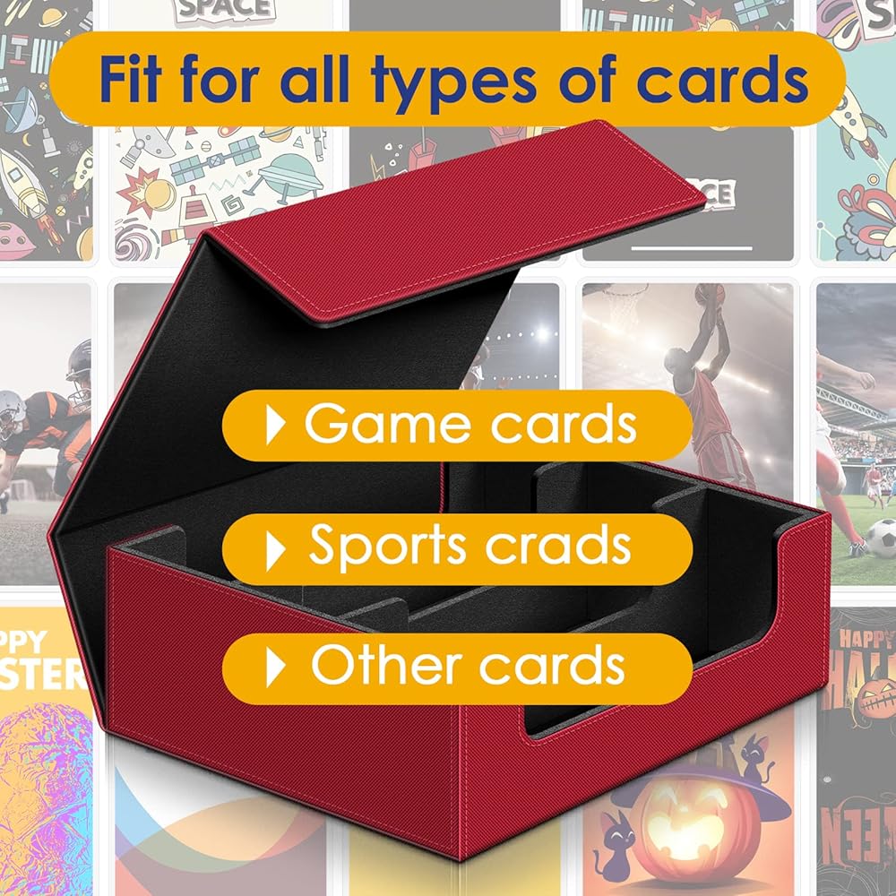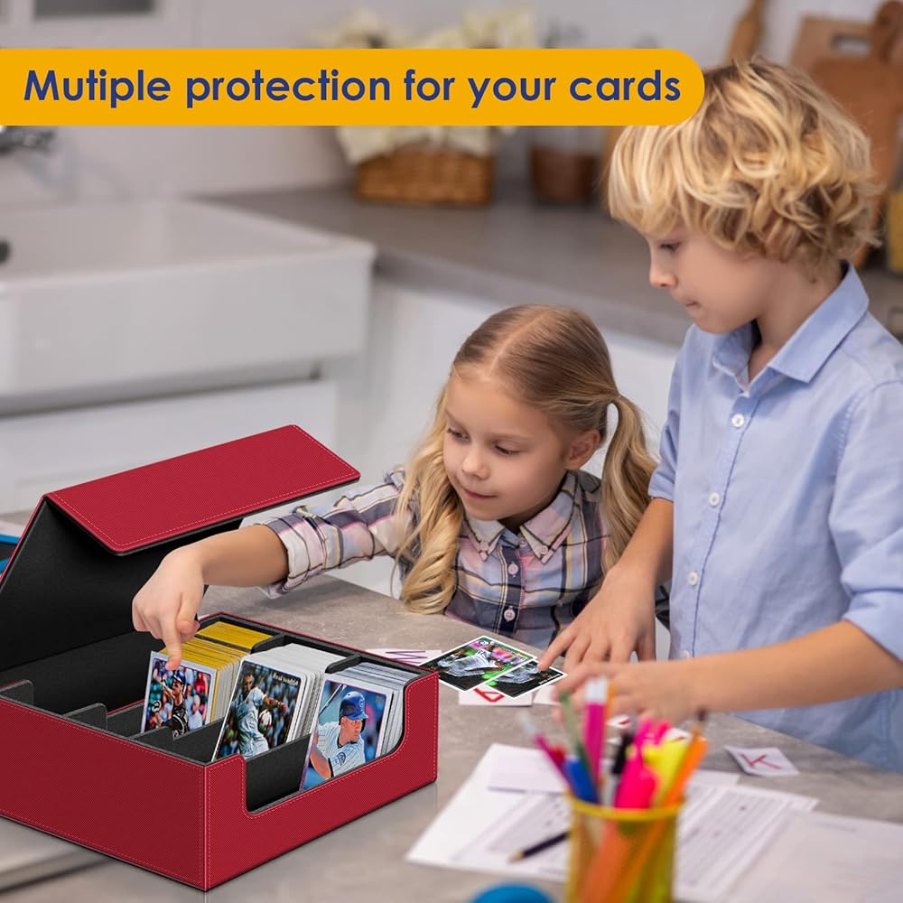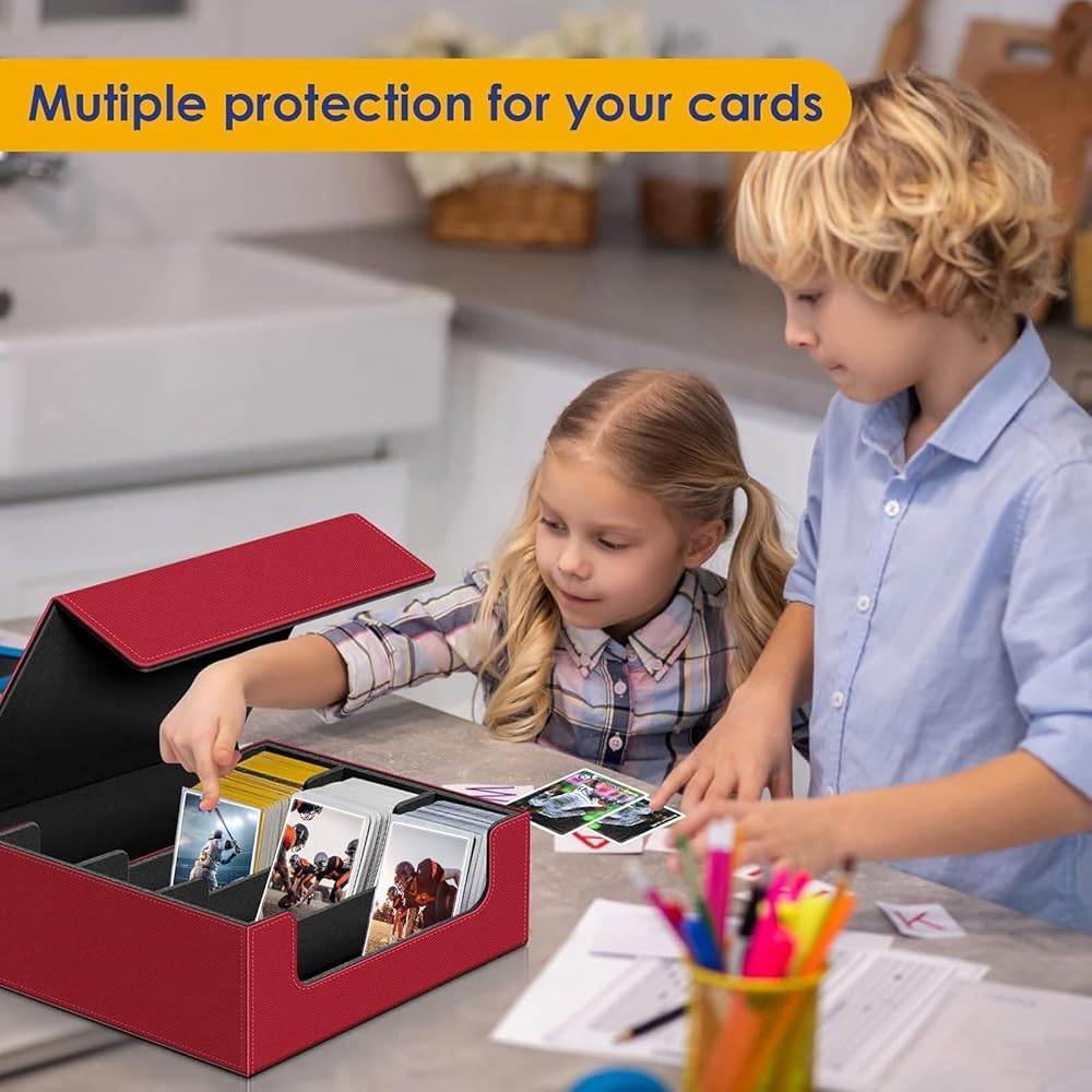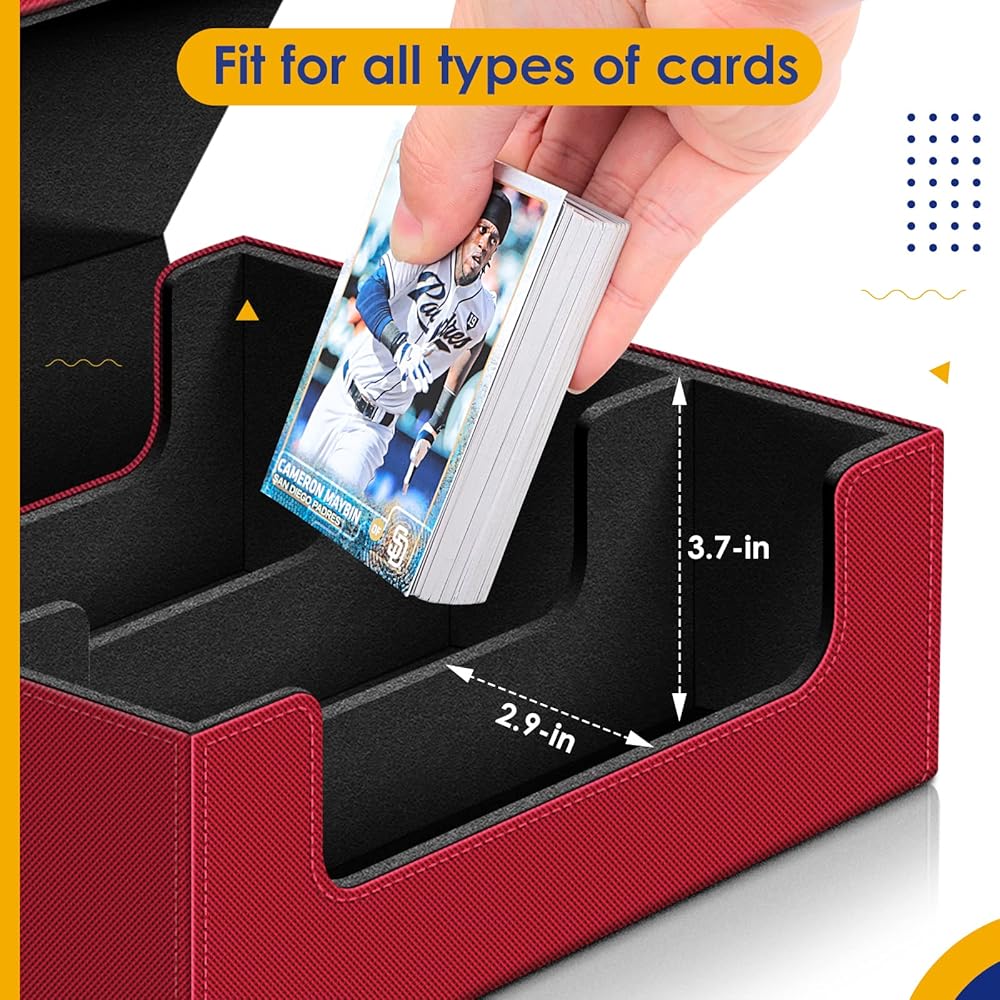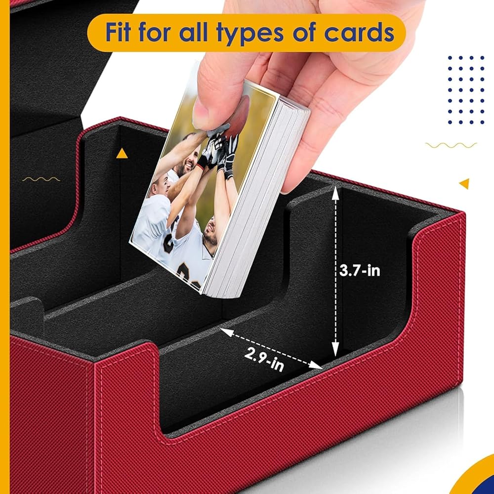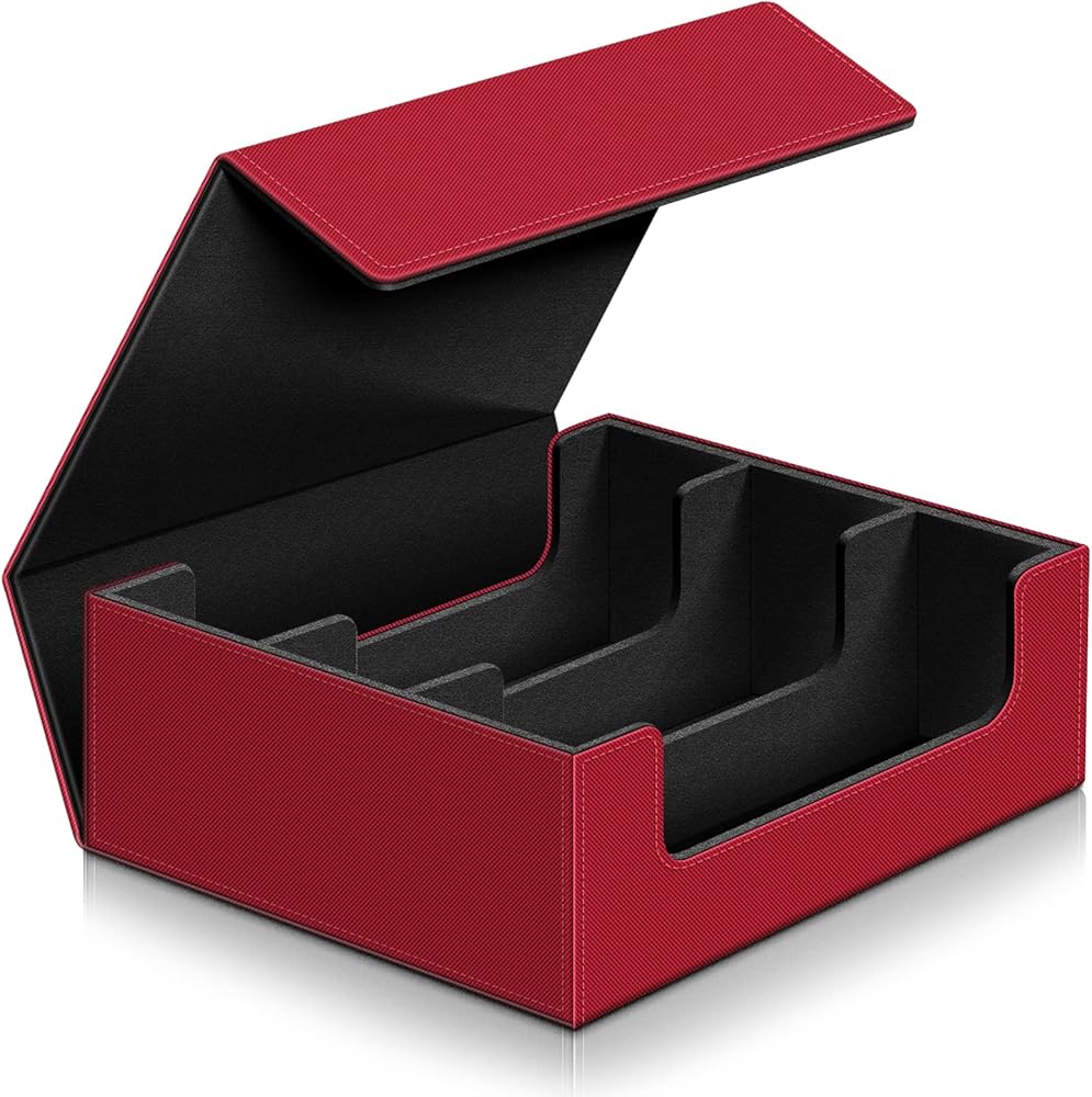 【يحمل أكثر من 1800 بطاقة بأكمام】بالمقارنة مع حافظة البطاقات البلاستيكية التقليدية، فإن صندوق البطاقات المصنوع من جلد البولي يوريثان المتين يحصل على ترقية، ويوفر مساحة أكبر لبطاقاتك. حجم حافظة بطاقات السطح الخاصة بنا هو 11.45 × 9.85 × 4.2 بوصة ، إنها كبيرة بما يكفي لتخزين أكثر من 1800 بطاقة ألعاب تداول ذات حجم قياسي بسهولة.