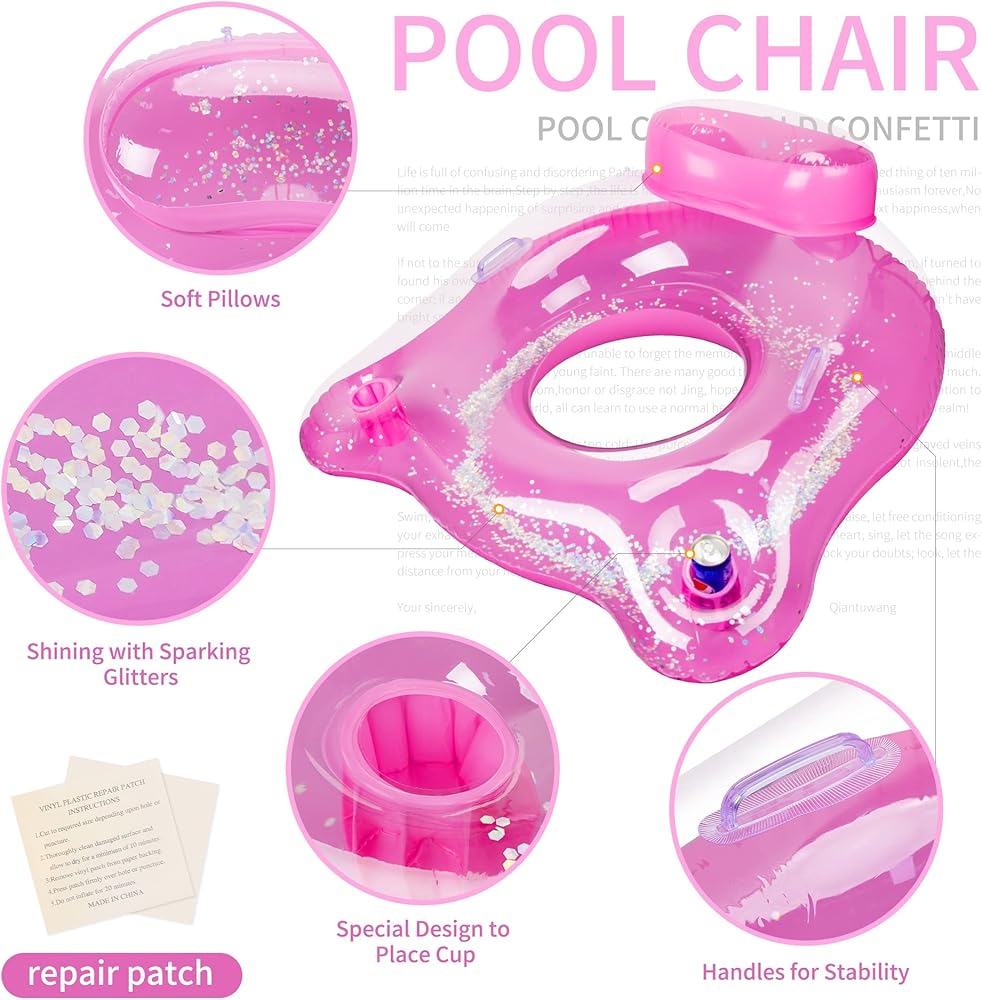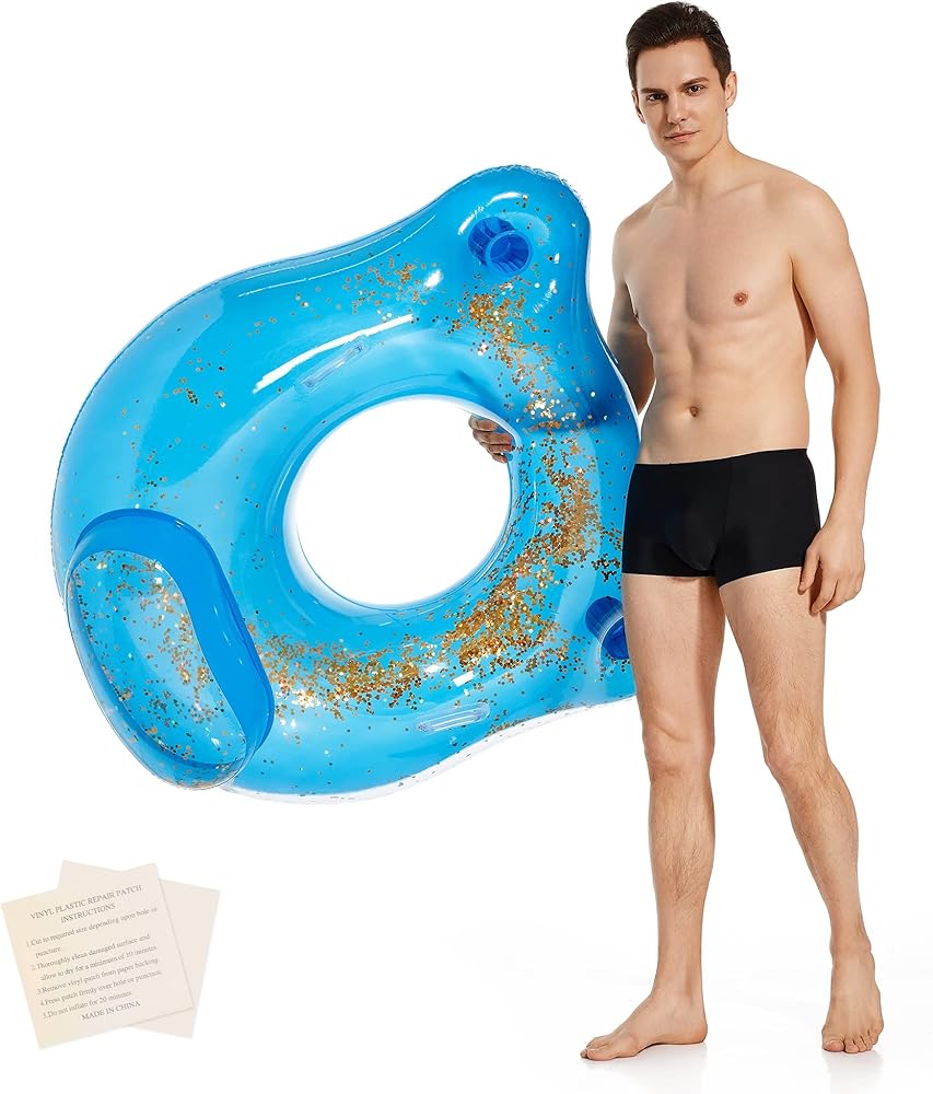 يمنحك وقتاً رائعاً في العفو: تطفو على الماء مع نصف غمر في الجسم، يُعد كرسي جولي يو القابل للنفخ عوامة حمام السباحة مثاليًا لحفلات السباحة العائمة والحفلات الصيفية للحفاظ على انتعاشك حتى في الشمس الشديدة. سيكون اختيارك المعقول للحصول على الكثير من المرح!