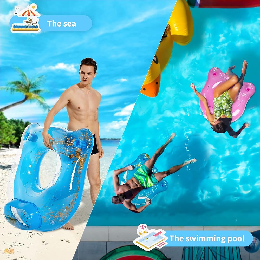 مظهر جذاب: ملون بشكل منفصل باللون الأزرق والوردي، هذه العوامتين على شكل كرسي حمام السباحة مزينة بألواح جميلة في الداخل. بسبب التصميم الفريد نصف الشفاف، يمكنك رؤية بوضوح التلألواح الداخلية اللامعة المتألقة في الشمس عند استخدامها في الهواء الطلق.