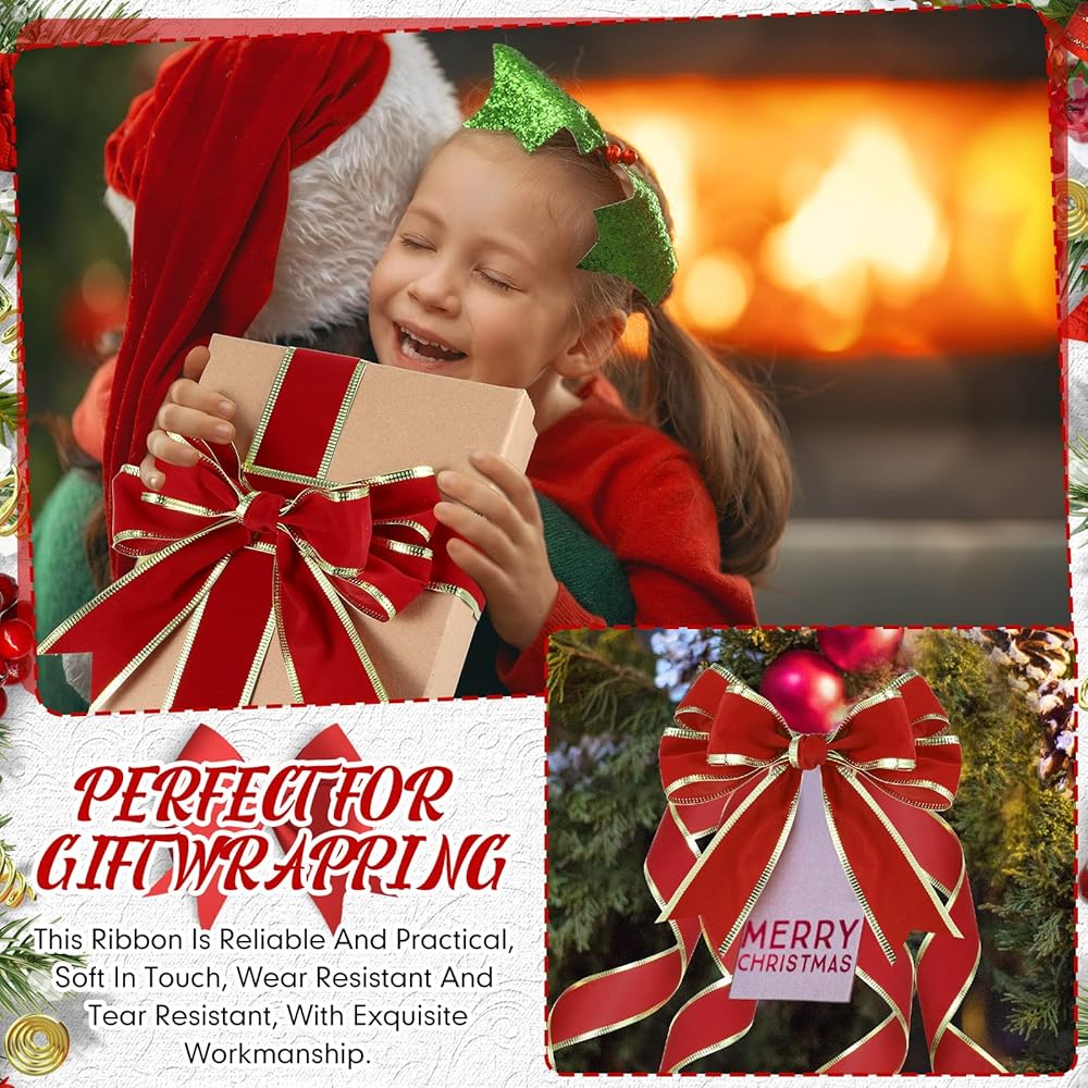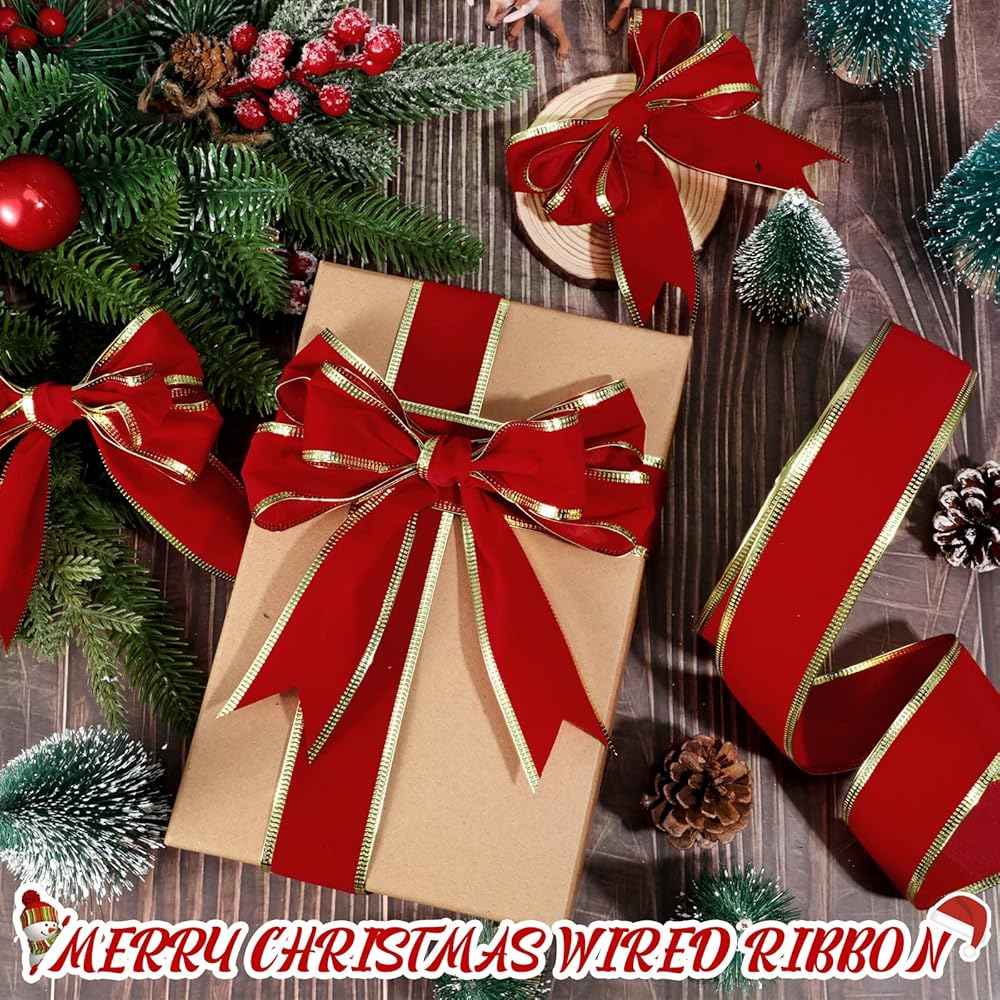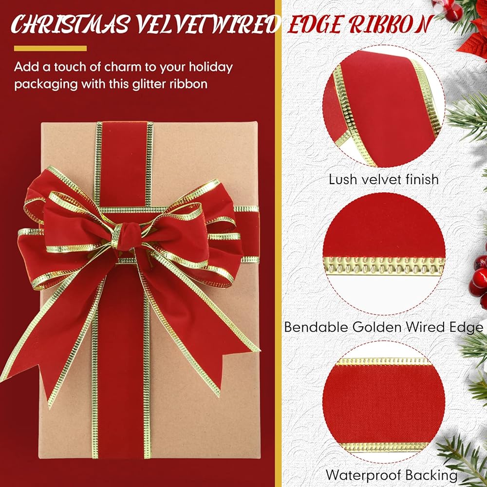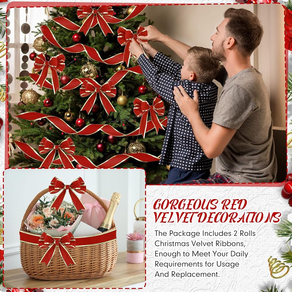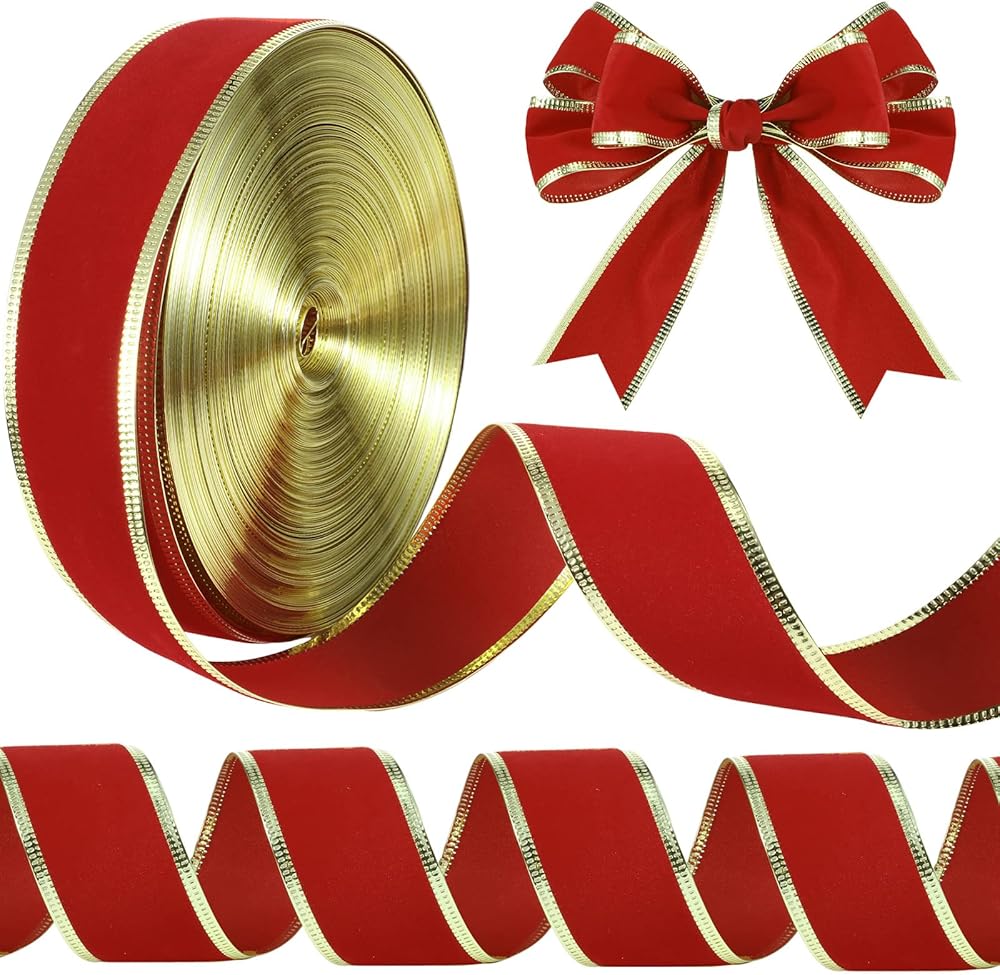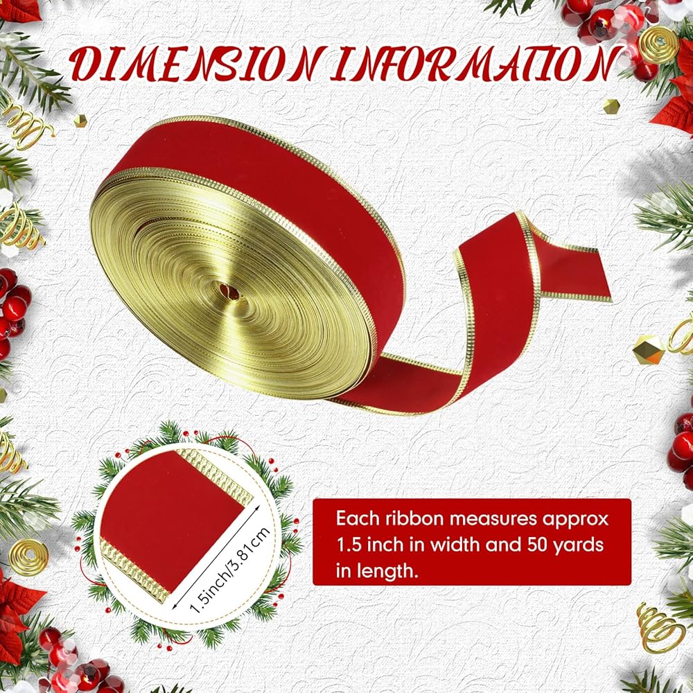 ما ستحصل عليه: تأتي العبوة مع لفة واحدة من الشريط المخملي الأحمر بحواف ذهبية، يبلغ عرضها حوالي 3.81 سم/ 1.5 انش، طول حوالي 50 ياردة، كافية لتلبية احتياجات الديكور الخاصة بك، مما يخلق جوًا مبهجًا للكريسماس لمنزلك