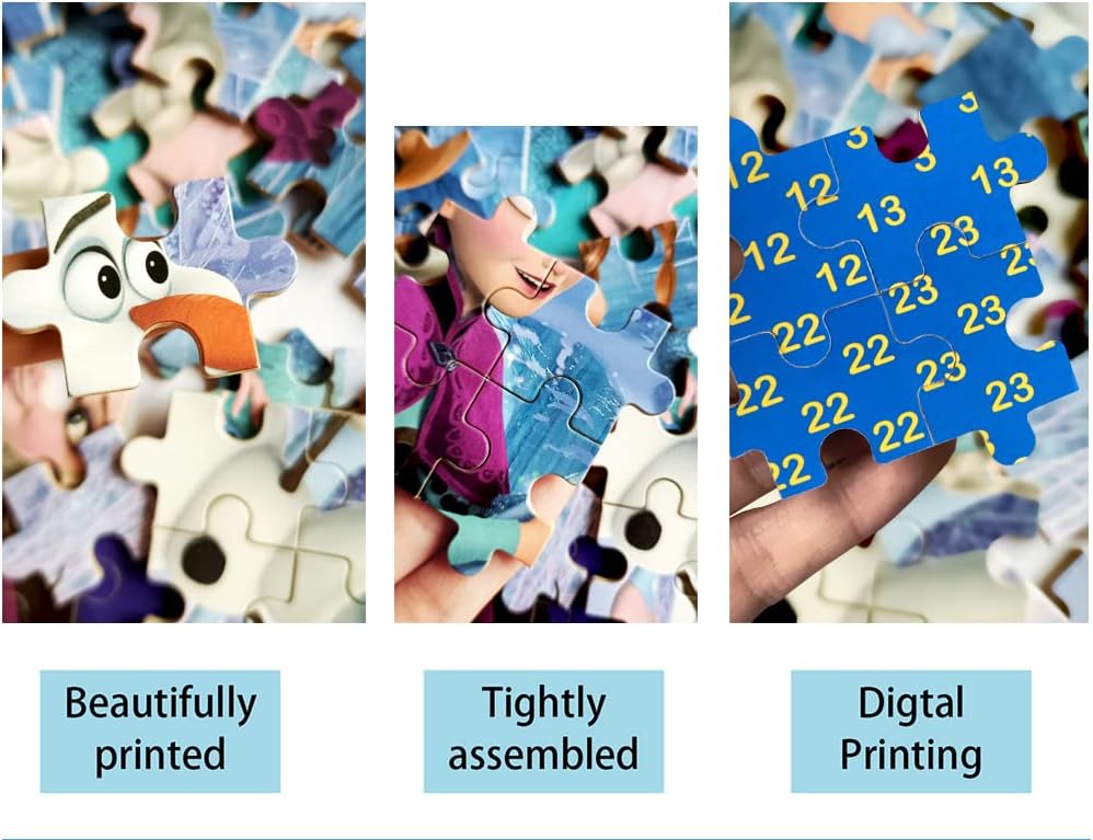 • مرخصة من ديزني: قطع أحجية الصور المقطوعة فروزن مصنوعة من مواد غير سامة وعديمة الرائحة وهي متينة بما فيه الكفاية ولا تتمزق بسهولة، وهي جيدة جدًا للأطفال. تتميز قطع ألغاز الأطفال بأنها ناعمة، مما يسمح بسهولة التجميع