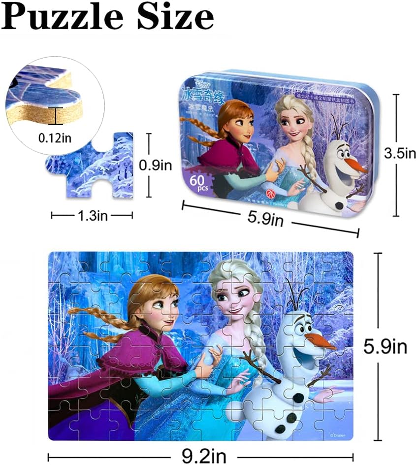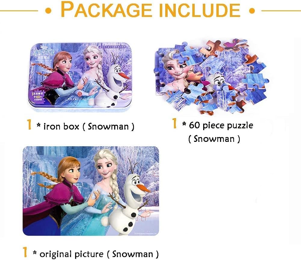 ألغاز ديزني فروزن من NEILDEN في صندوق معدني 60 قطعة أحجية الصور المقطوعة للأطفال من سن 3 سنوات فما فوق للأطفال الذين يتعلمون ألعاب الألغاز التعليمية (رجل الثلج) مرخصة من ديزني
