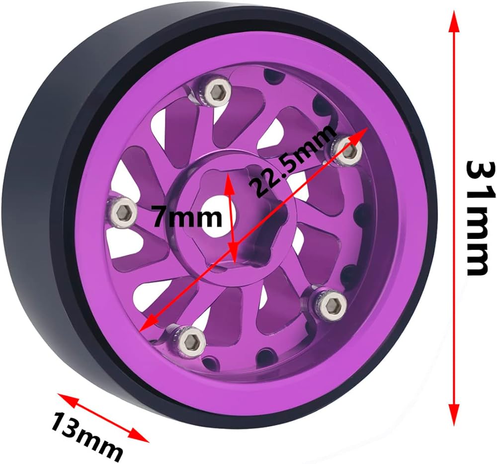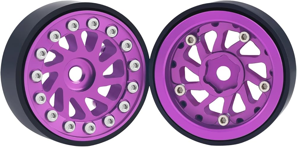 إطارات عجلات DJX 1.0 Beadlock لجميع ملحقات ترقيات السيارات الزاحفة مقاس 1/24 المحورية SCX24 Deadbolt RC (أرجواني)...