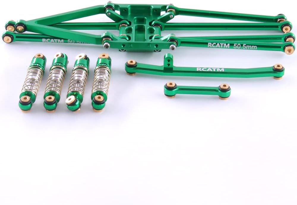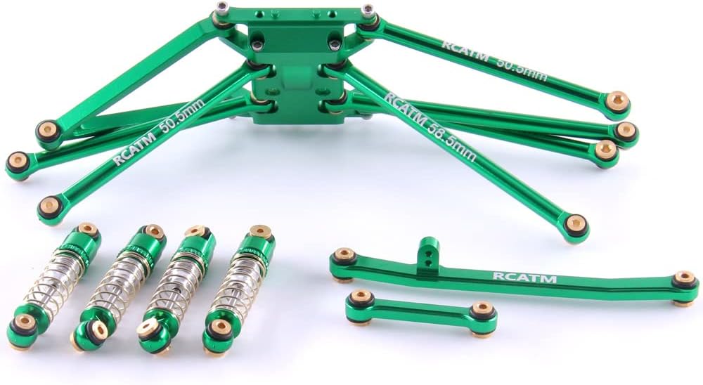 SCX24 ترقية وصلة التوجيه ممتص للصدمات من سبائك الألومنيوم دعم علبة تروس للمحور 1 / 24 RC إطار تعليق السيارة (طقم أخضر) التعبئة: 1 قطعة. دعم علبة تروس، 4 قطع. ممتص للصدمات، 9 قطع. من قضيب التوصيل، بما في ذلك مسامير التثبيت، مع وزن صافٍ من تكنولوجيا التحكم الرقمي CNC 39G، وهي متينة وجميلة. اجعل سيارتك أكثر جاذبية وبرودة المواد المعدنية الصلبة، على نحو سلس ومتين، سهلة التركيب بعد الاختبار الاحترافي، يرجى الاطمئنان إلى أنها جديدة تمامًا بنسبة 100%