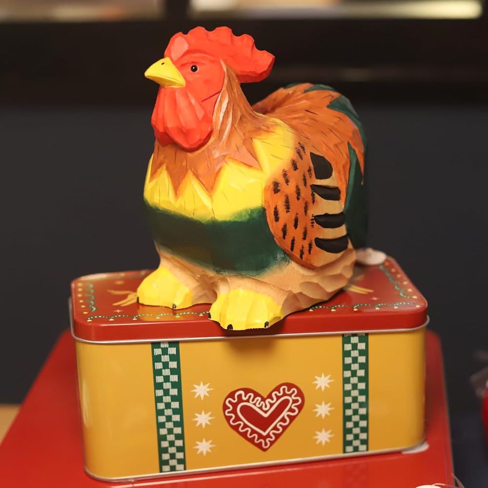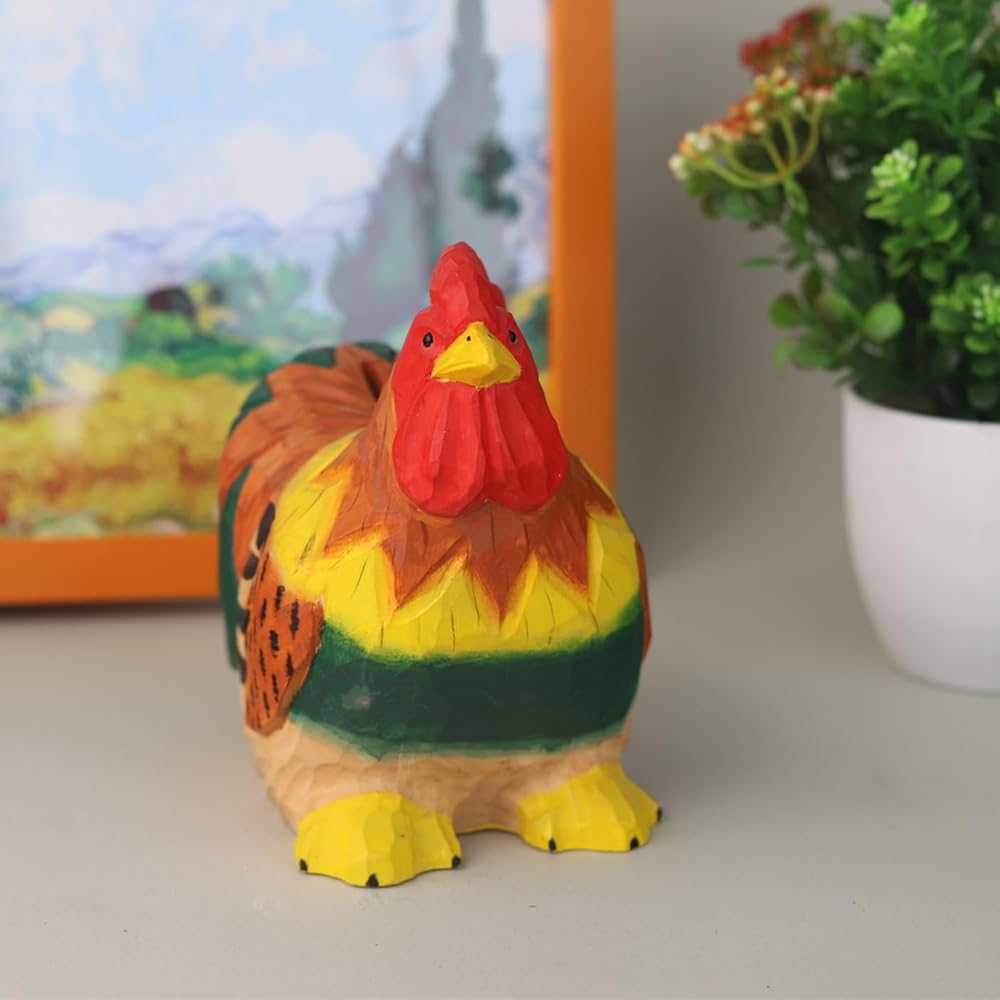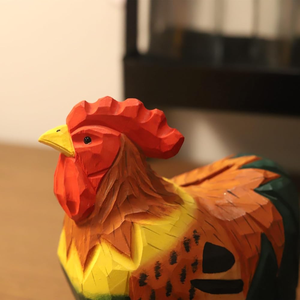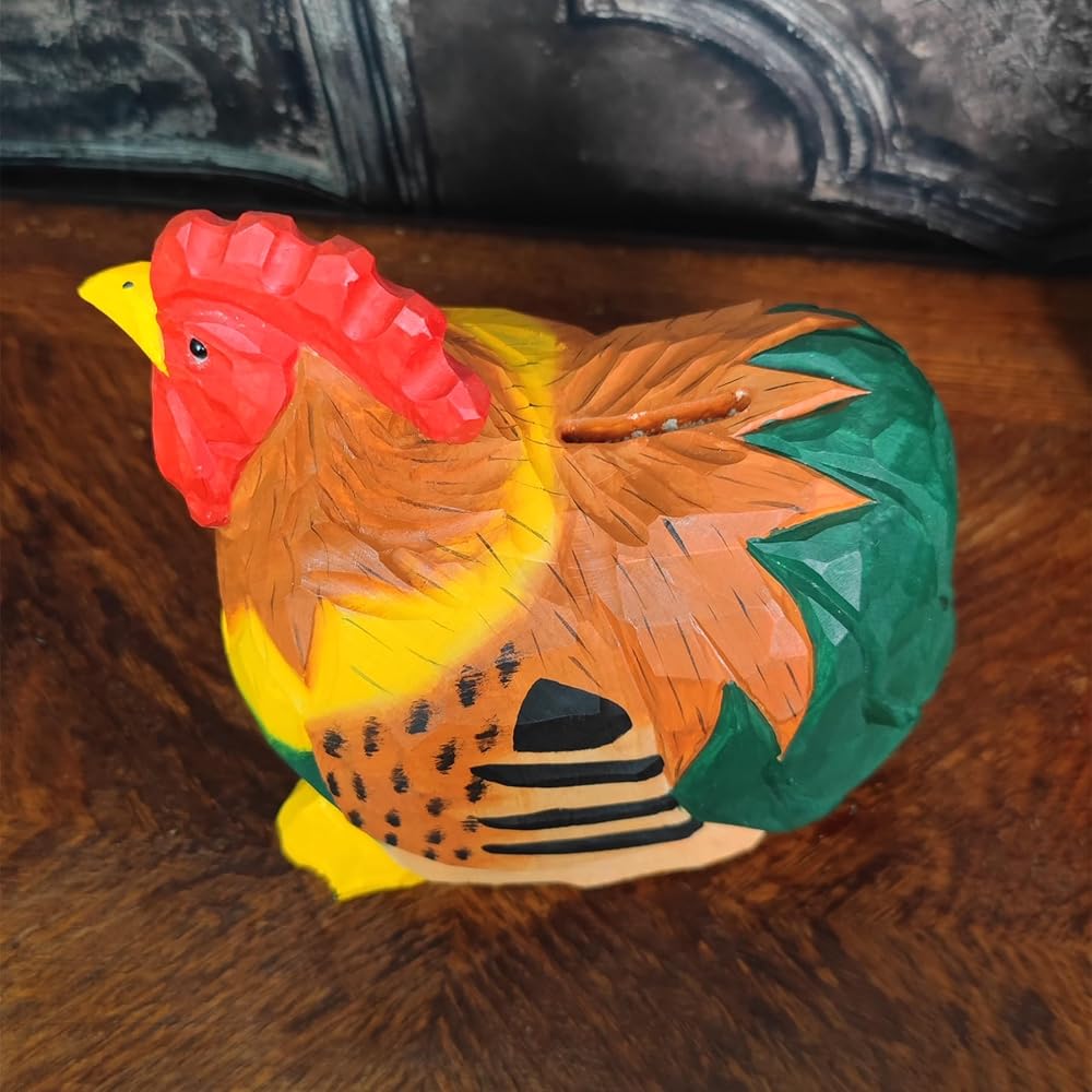 • 【Colorful Rooster Statue】 This wooden rooster coin bank is hand-painted with vibrant colors and an adorable design, making it a fun and charming statue when perched on a shelf or table in the living room or bedroom.
