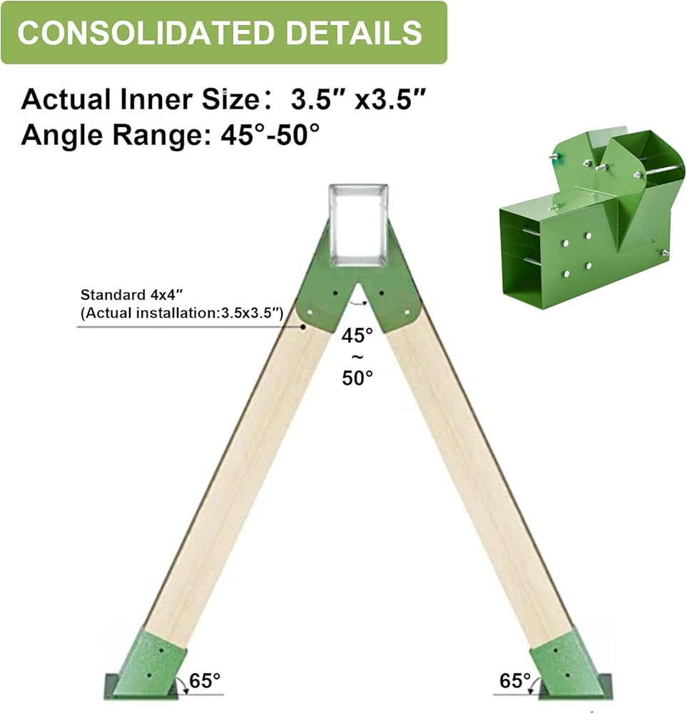 【Size Specification】Suitable for 4"x 4" Swing Post (Actual Internal Dimensions: 3.5" x 3.5") and one top beam(Actual Internal Dimensions:3.5" x 5.5")