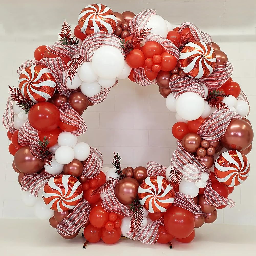 【ديكورات حفلات الكريسماس】مع اللون الأحمر والأبيض الكلاسيكي، تم تخصيص إكليل بالونات موموسيرو لحفلة عيد الميلاد. خذها لحفلتك (عيد الميلاد، حفلات استقبال المولود الجديد، الزفاف، خطوبة حفل الزفاف والمزيد. سوف تجلب الدفء والحب للأشخاص الحاضرين.