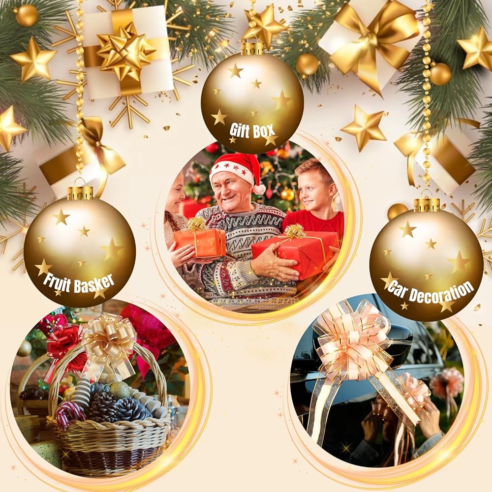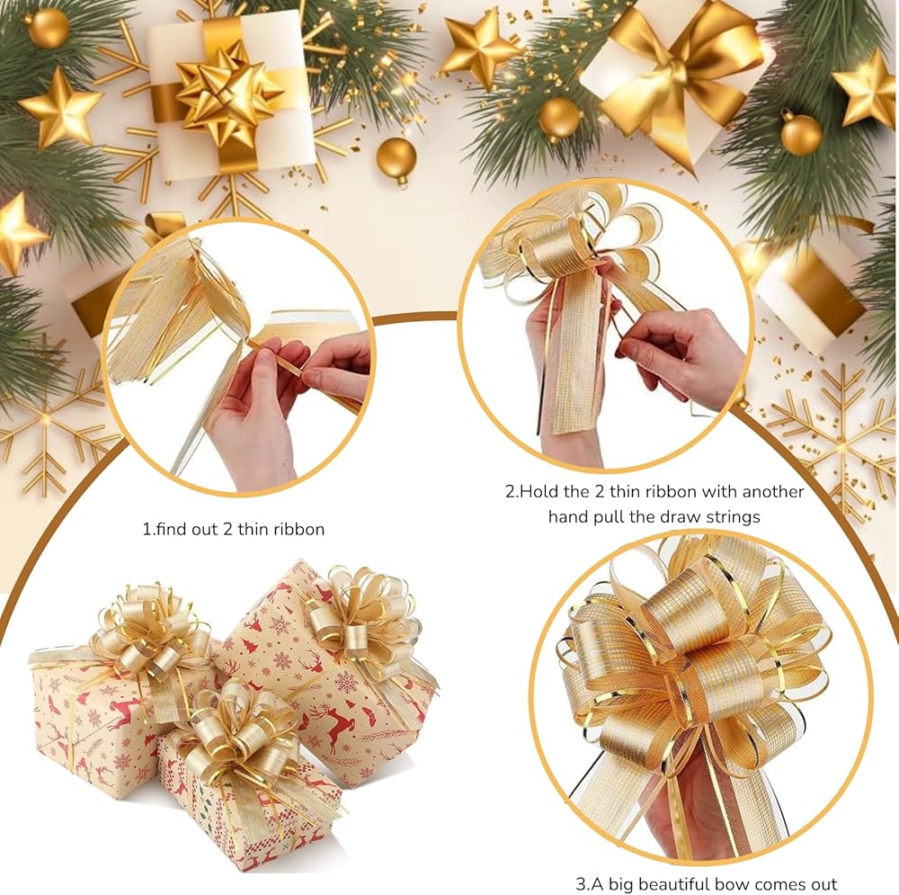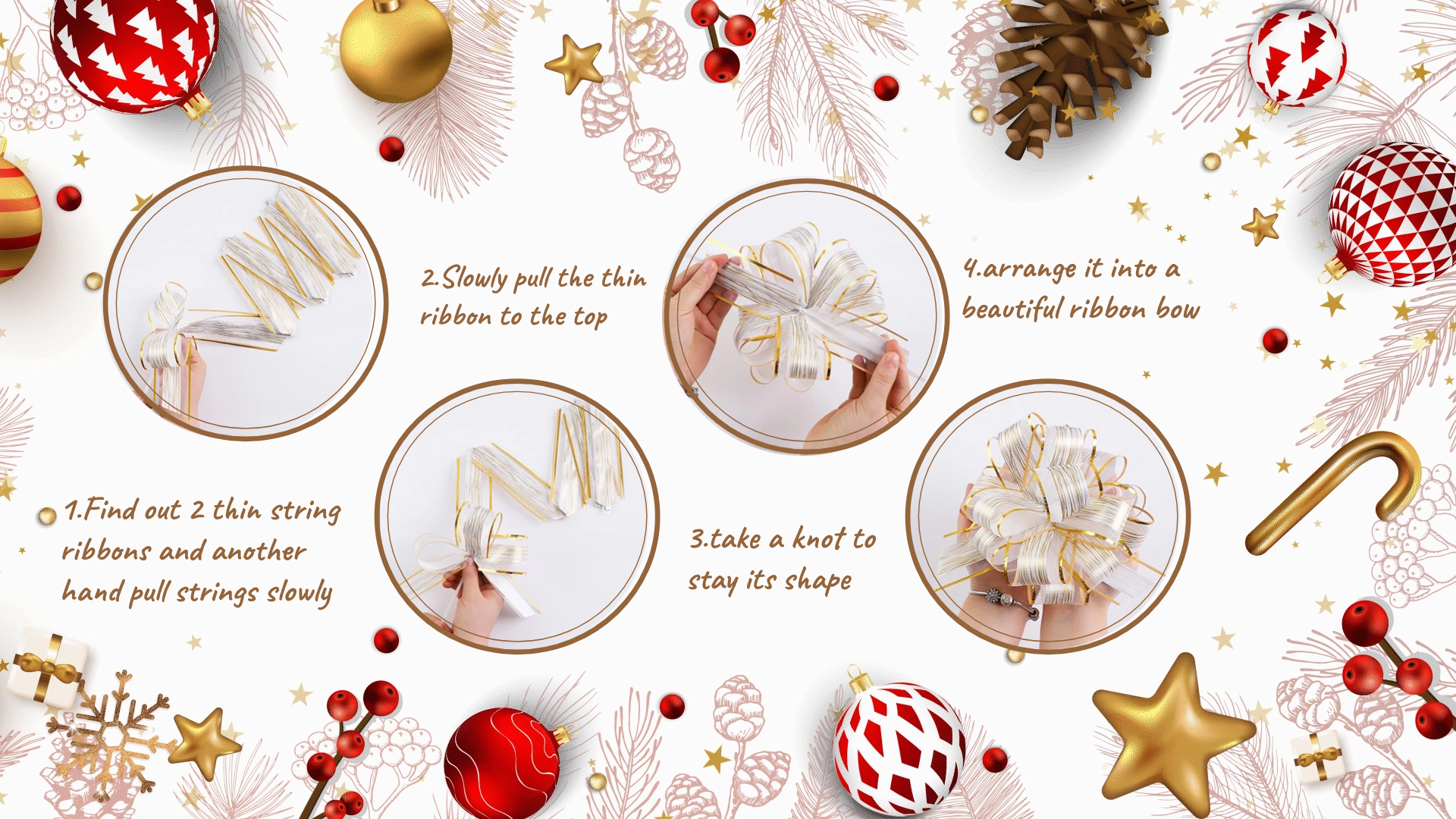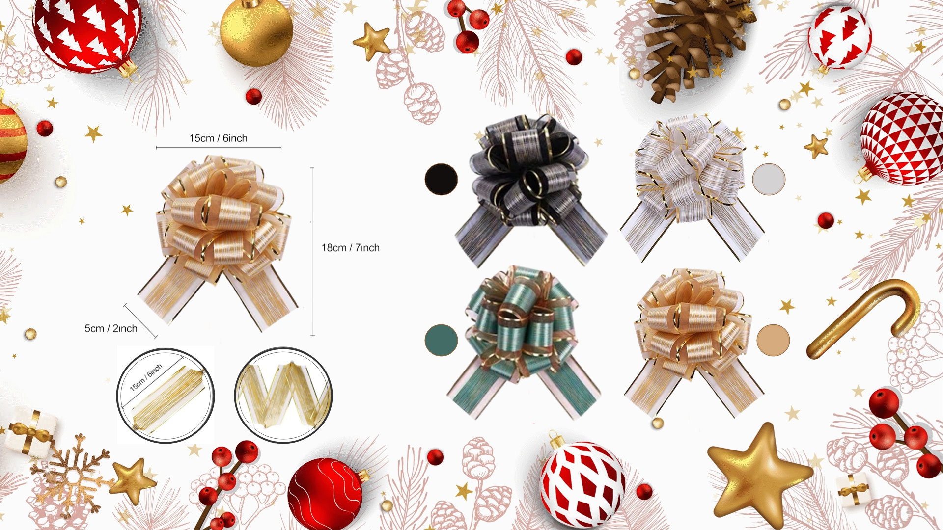 تشغيل بسيط: يتكون كل قوس من 8 مكونات على شكل فيونكة، مثبتة بإحكام بواسطة حلقات بلاستيكية. ما عليك سوى العثور على شريطين رفيعين، وأمسكهما بيد واحدة، واسحبه ببطء باليد الأخرى لإنشاء قوس كبير جميل. القطر النهائي 15 سم/6 انش، وعرض الشريط 2 انش. تتميز بمظهر لطيف وحجم مناسب، مما يجعلها مناسبة لتغليف الهدايا.