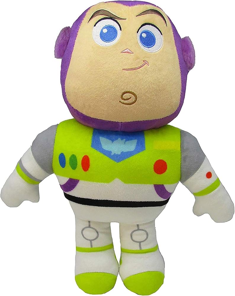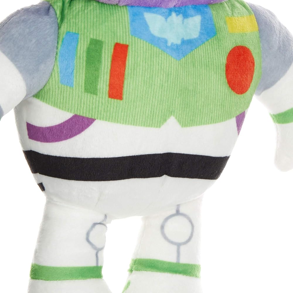 التفاصيل: يبلغ طول باز لايت يير ببدلة الفضاء الكلاسيكية باللونين الأخضر والأبيض 15 انش وهي فائقة النعومة ويمكن غسلها في الغسالة. إنه مثالي للعب ومحبوب بما يكفي للعناق في الليل.