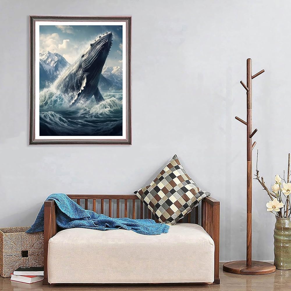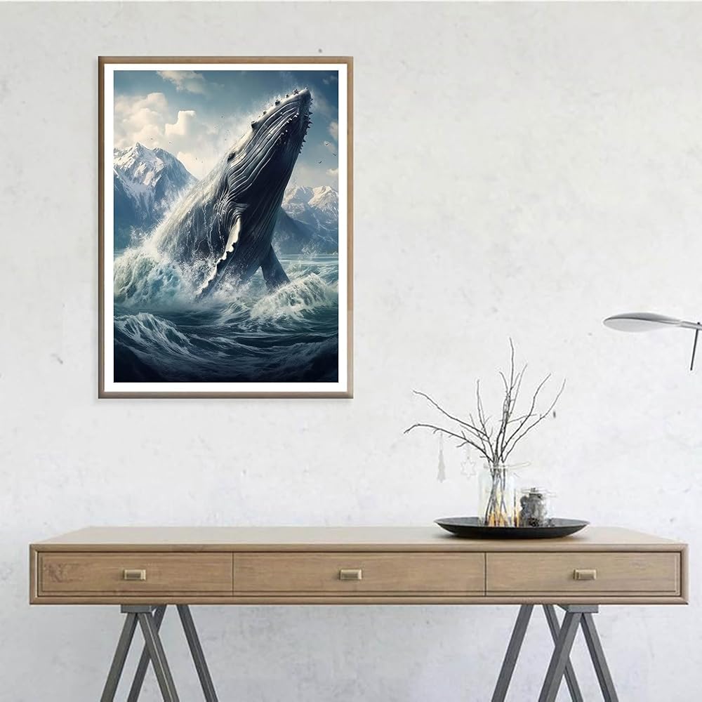جينفونر مجموعة لوحات ماسية خماسية الابعاد يمكنك تركيبها بنفسك على شكل حوت بحر حسب الارقام، مجموعة حفر كاملة للبالغين، رسم بالماس وحيوانات فنية مطرزة بغرز متقاطعة وحجر الراين لتزيين جدران المنزل 12 ×