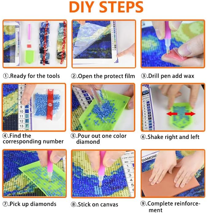 - مجموعة الرسم الماسي خماسية الأبعاد التي تصنعها بنفسك أسهل وأكثر جمالًا من الخياطة المتقاطعة. من السهل تحقيق الأعمال الفنية الكلاسيكية، وسوف تستمتع بمتعة صنعها.