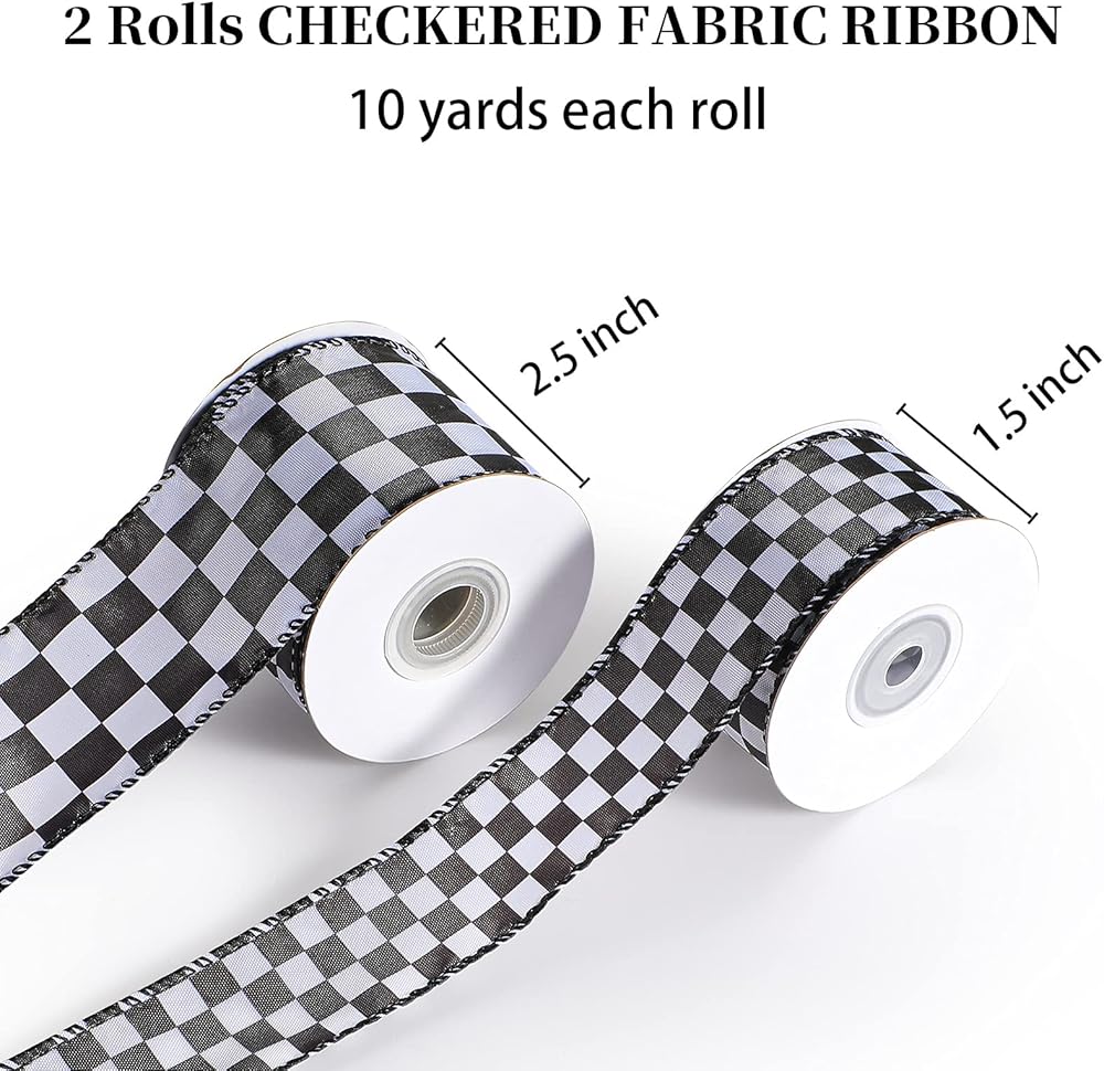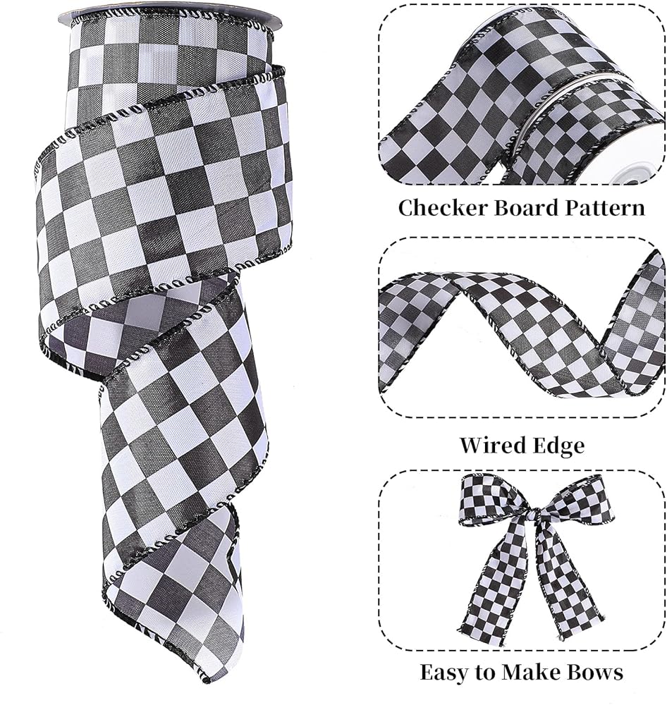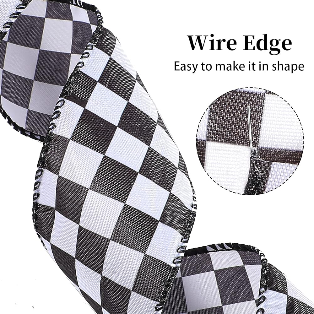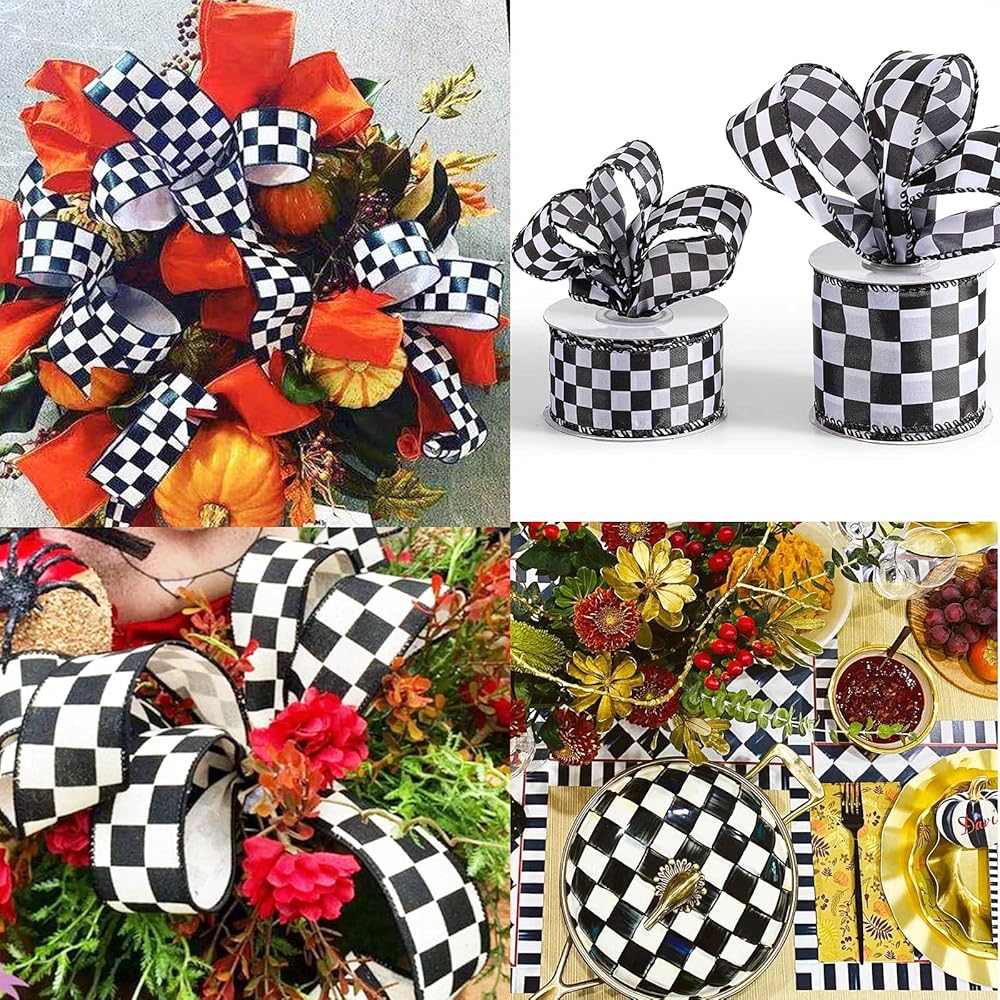 تصميم ذو حافة سلكية: تم تصميم شريط جنجهام الأسود والأبيض بحافة سلكية، يسهل عليك لفه، نمط جريء مع نسيج عريض، متوافق جدًا مع الاستخدام في الاحتفالات، نمط رسمي باللونين الأسود والأبيض لأي مناسبة