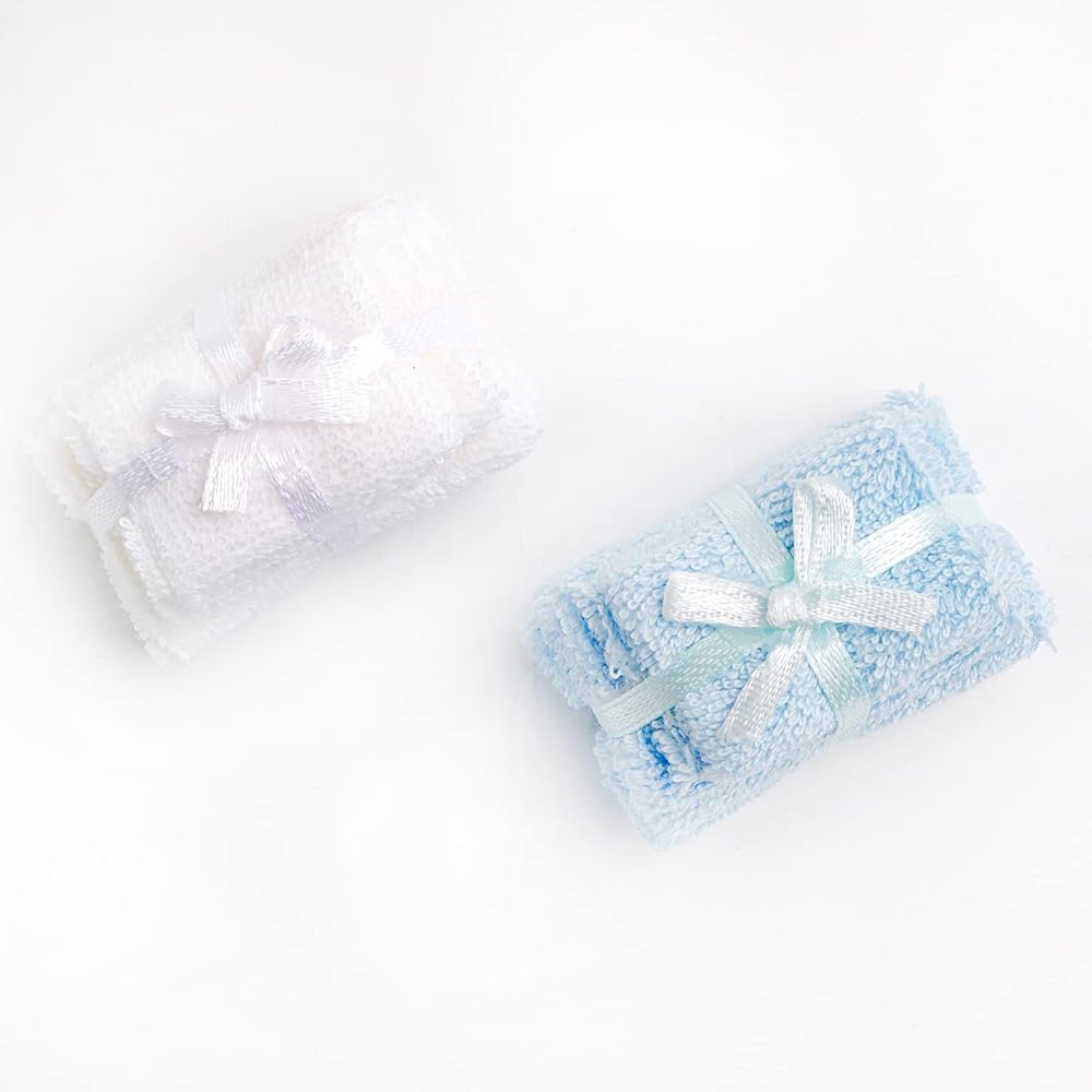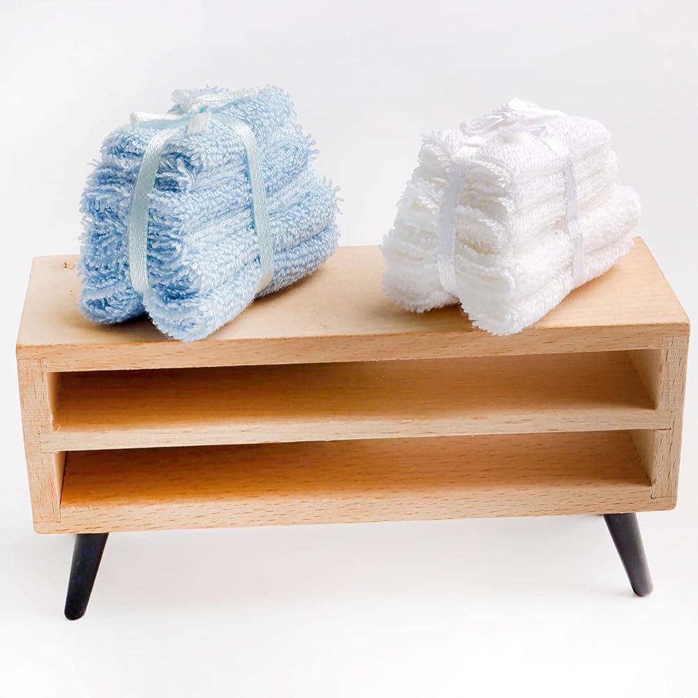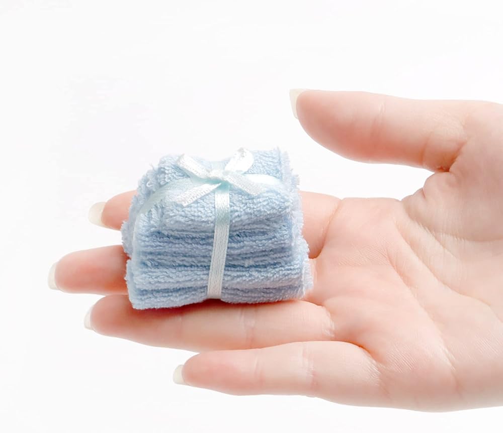 تتضمن العبوة مجموعة واحدة من المناشف الزرقاء، ومجموعة واحدة من المناشف البيضاء، مناسبة لحمامك المصغر