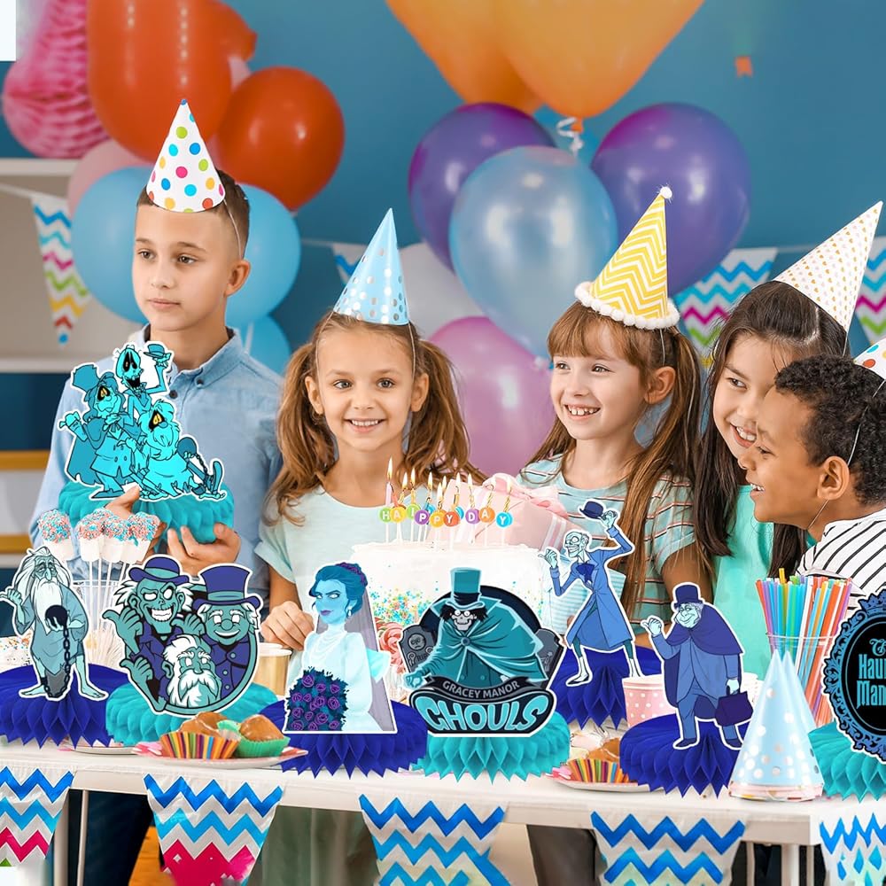 عناصر الهالوين: تستخدم القطع المركزية لطاولة الهالوين ألوان الهالوين الكلاسيكية، الأزرق والأخضر، مع تصميمات الهالوين المثالية المختلفة بما في ذلك الأشباح الكلاسيكية والحساسة، لطيفة لديكورات حفلات الهالوين الخاصة بك.