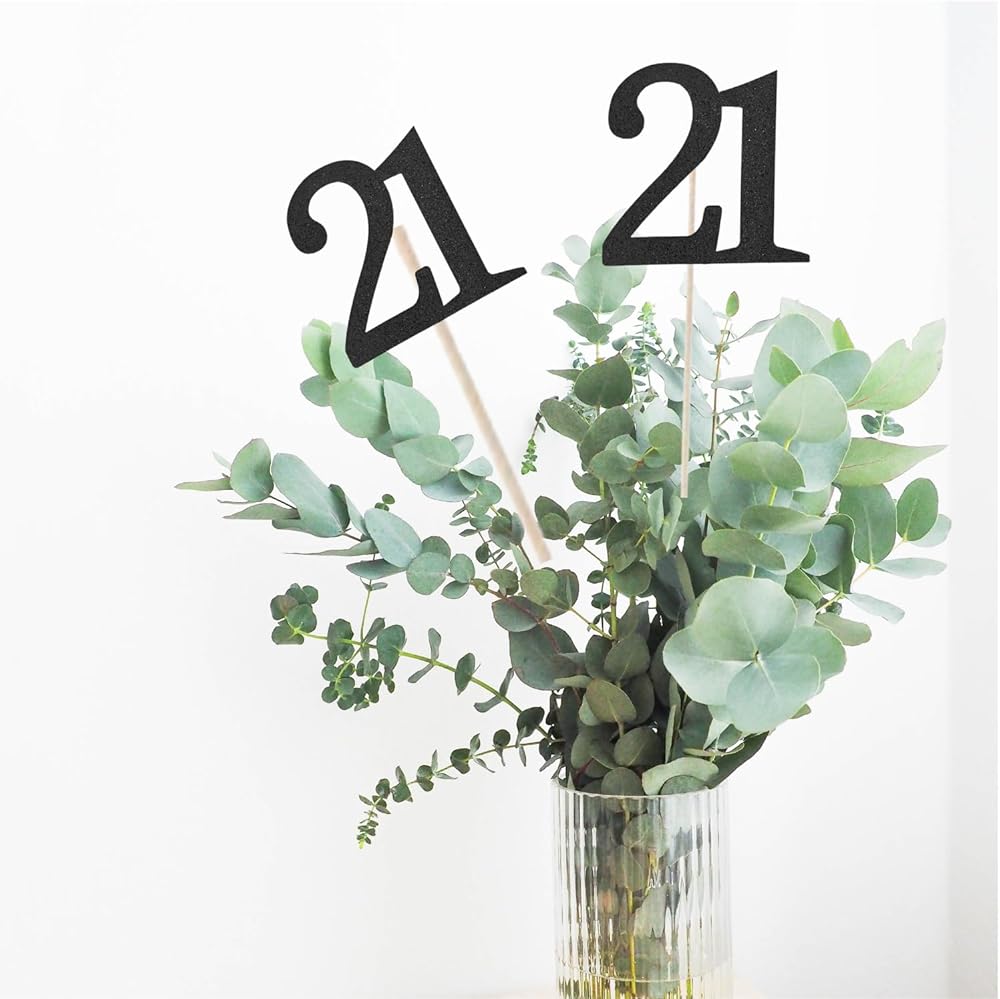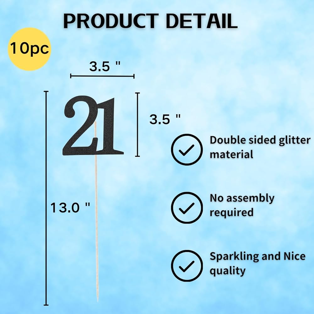 10 عبوات من العصي المركزية اللامعة مزدوجة الجوانب لعيد الميلاد الحادي والعشرين، عدد 21 قطعة علوية للطاولة لتزيين حفلات عيد الميلاد الحادي والعشرين (أسود مزدوج الجوانب)