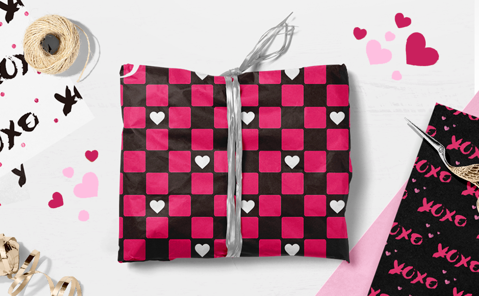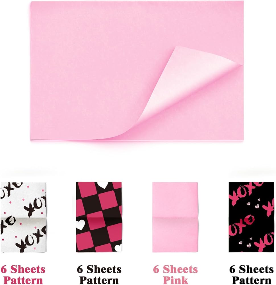 💓[عبوة اقتصادية] تتضمن مجموعة ورق تغليف عيد الحب 6 أوراق من ورق المناديل الوردية مقاس 15 × 20 انش، 6 أوراق من ورق المناديل المطبوع باللون الأبيض مقاس 15 × 20 انش، و12 ورقة من المناديل الورقية المطبوعة باللونين الأحمر والأسود مقاس 15 × 20 انش لتلبية احتياجات التعبئة والتزيين الخاصة بك.