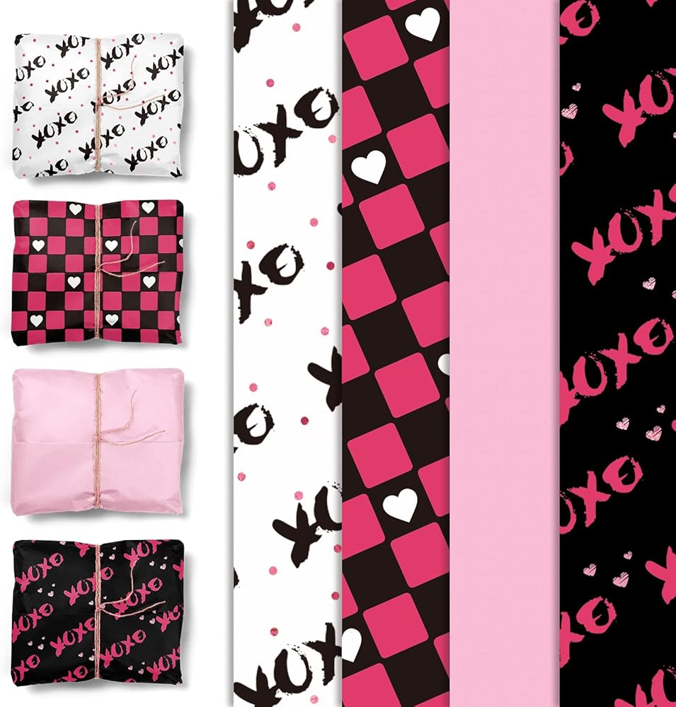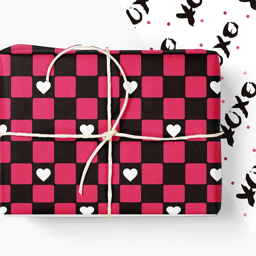 💓[تصميم فريد] تم تصميم ورق التغليف على شكل قلب أحمر في الأصل بواسطة نيكروم هوم، باللون الزهري والأحمر والأسود والأبيض وقلوب الحب والمربعات وأنماط اكس او وغيرها من العناصر تجعل ورق التغليف مليئًا بالأجواء الرومانسية، مما يتيح لك الشعور بعيد الحب الرومانسي.
