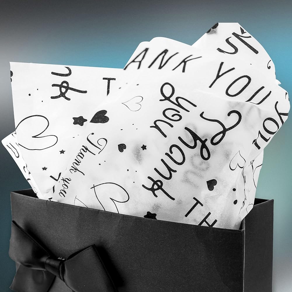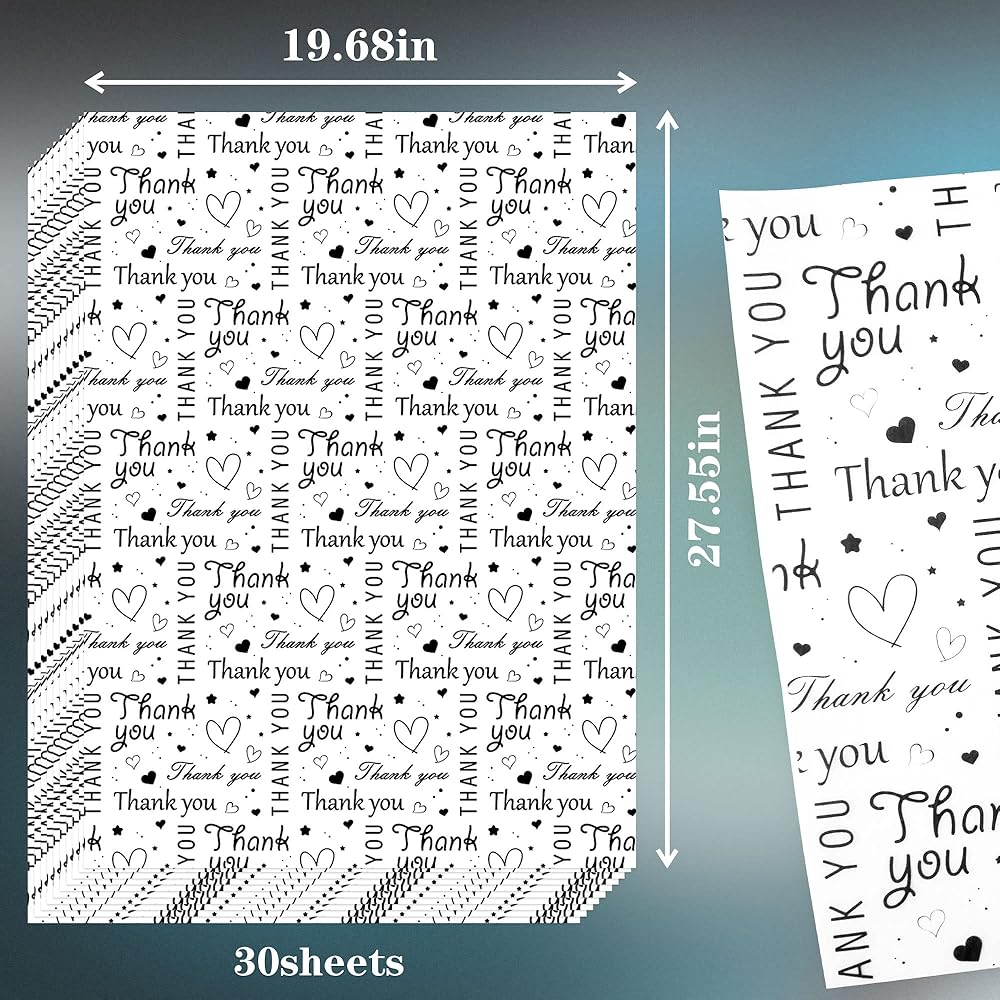30 ورقة مقاس 28 × 20 بوصة، شكرًا لك، مناديل ورقية شكرًا لك على الأعمال الصغيرة، ورق مناديل للتغليف، وأكياس الهدايا، ورق مناديل شكرًا لك على التغليف (أسود)