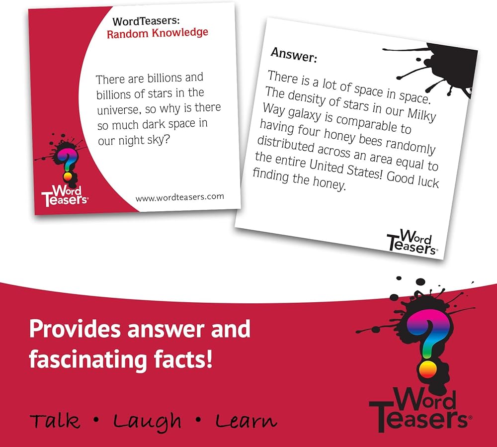 هدية مثالية: تعد ألعاب الكلمات بمثابة هدايا رائعة في المناسبات المختلفة وهدايا أعياد الميلاد وأنشطة الفصل الدراسي. لا توجد مناسبة خاصة؟ لا بأس! إنه دائمًا وقت رائع لبدء المحادثة!