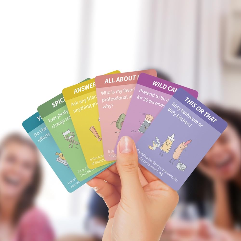 This friends card game has much more to offer than just questions. There are also challenges that often lead to hilarious or entertaining moments among friends.
