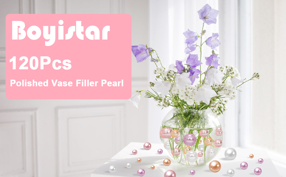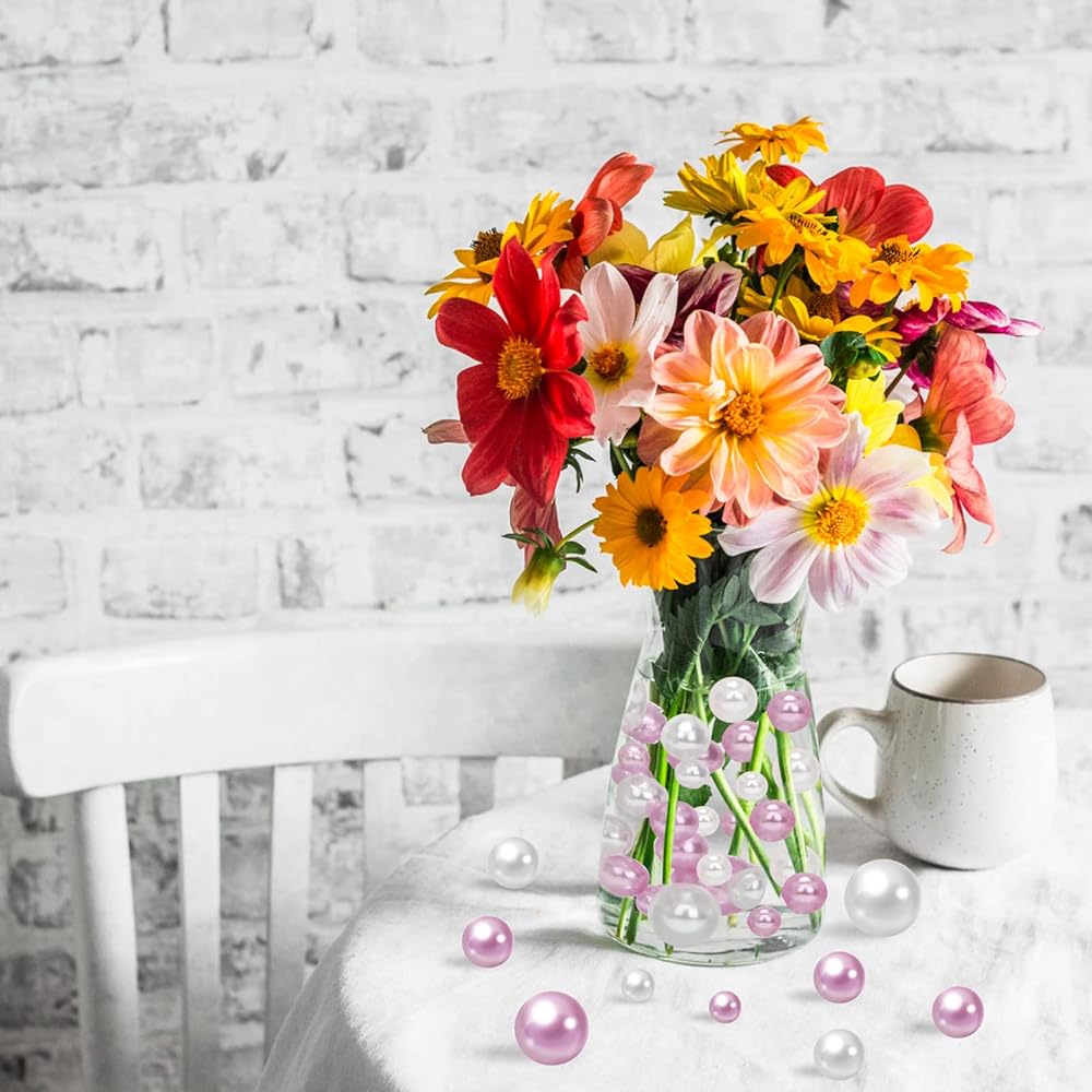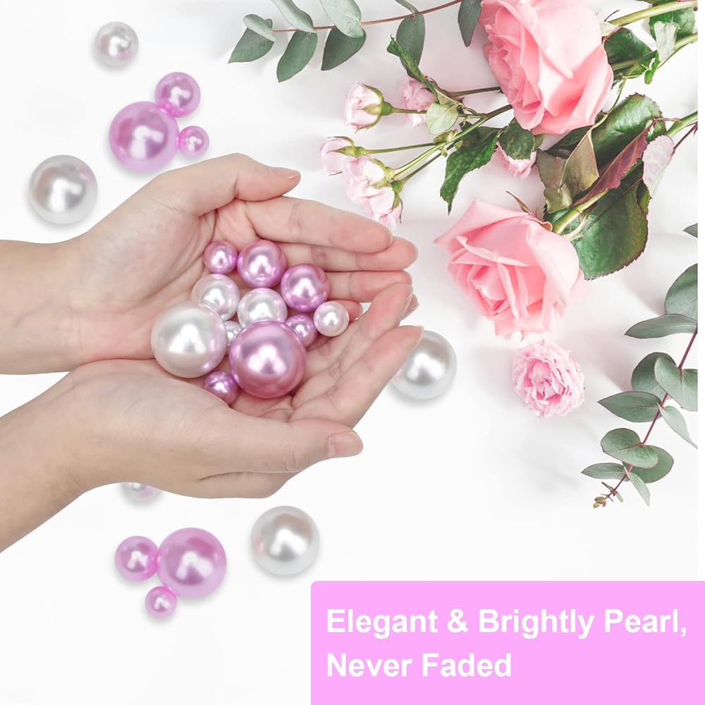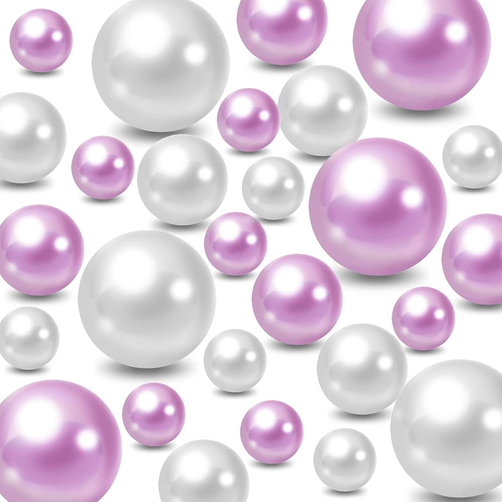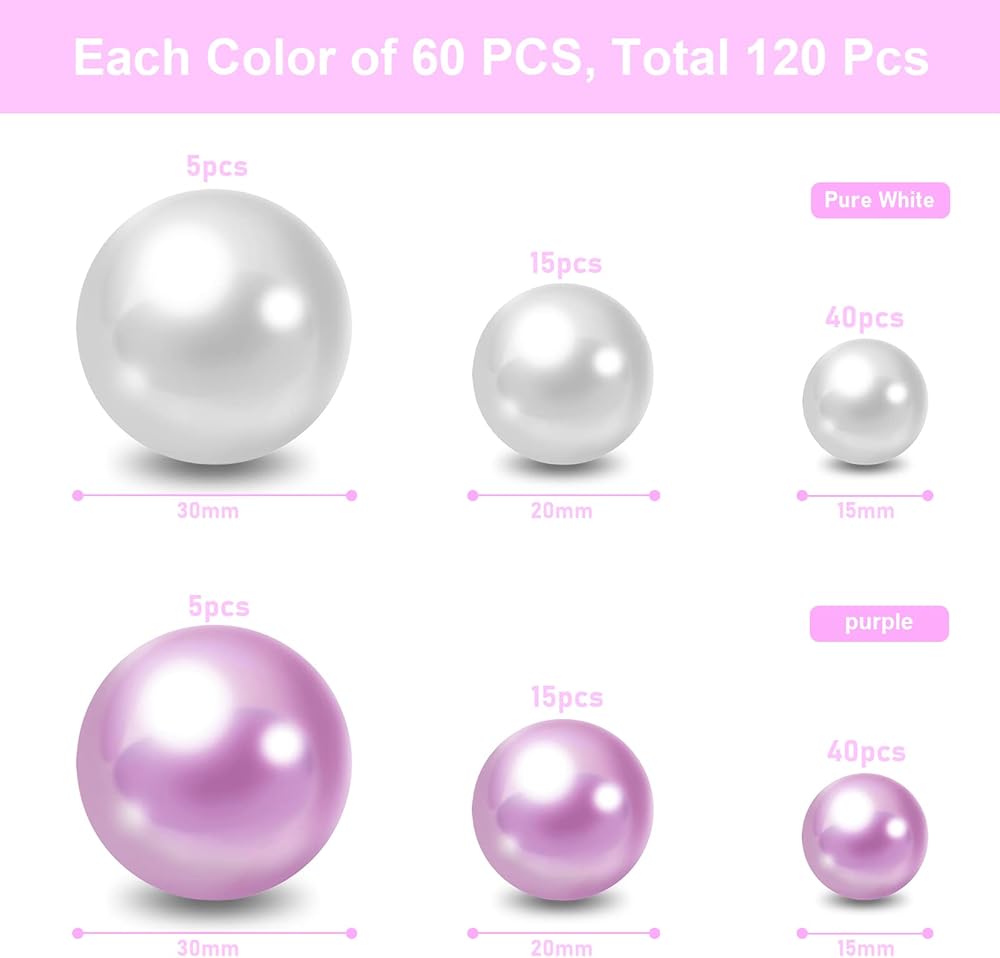 120 قطعة من حشو المزهرية العائمة، مزهرية بدون فتحات، خرز من اللؤلؤ بأحجام متنوعة، لؤلؤ صناعي دائري لحشو المزهرية، لآلئ لحامل الفرش، الحرف اليدوية، ديكور المنزل لؤلؤي (أرجواني + أبيض)