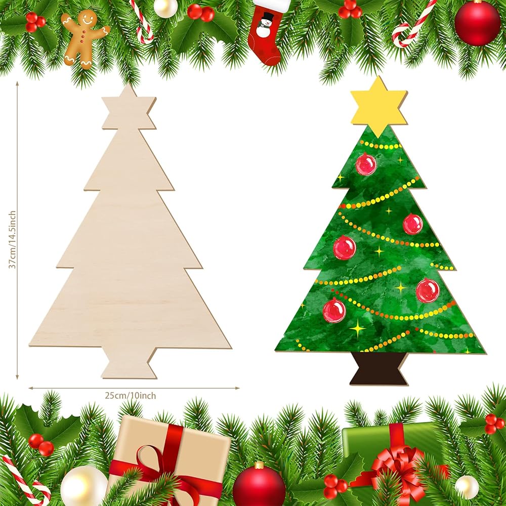 4 × ديكورات خشبية لشجرة عيد الميلاد غير منتهية