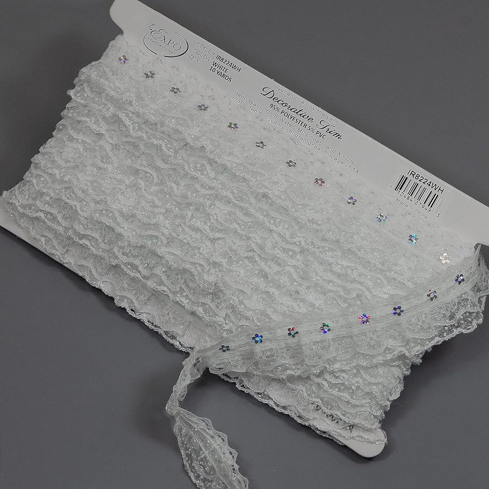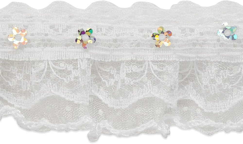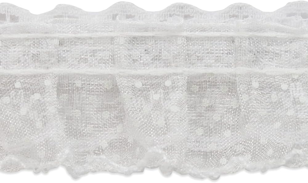 حواف من The Yard Aria 1 1/4 بوصة دانتيل مكشكش بالترتر باللون الأبيض | (قصة 10 ياردة)