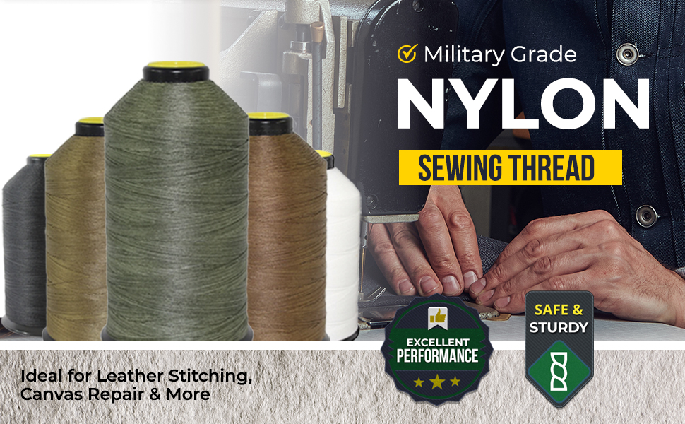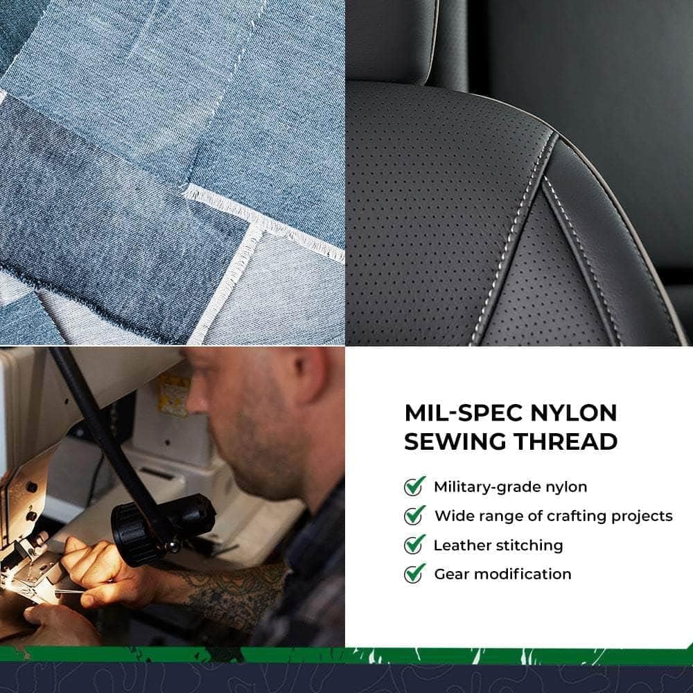 MILSPEC NYLON THREAD - خيط الخياطة المصنوع من النايلون من الدرجة العسكرية متين وقوي للغاية، مما يجعله المادة المفضلة لمجموعة واسعة من المشروعات اليدوية. يمكن استخدام خيط النايلون في إصلاح القماش، وخياطة الجلود، وتعديل التروس، والأثاث، ومئات التطبيقات الأخرى الداخلية والخارجية والبرية والبقاء على قيد الحياة.