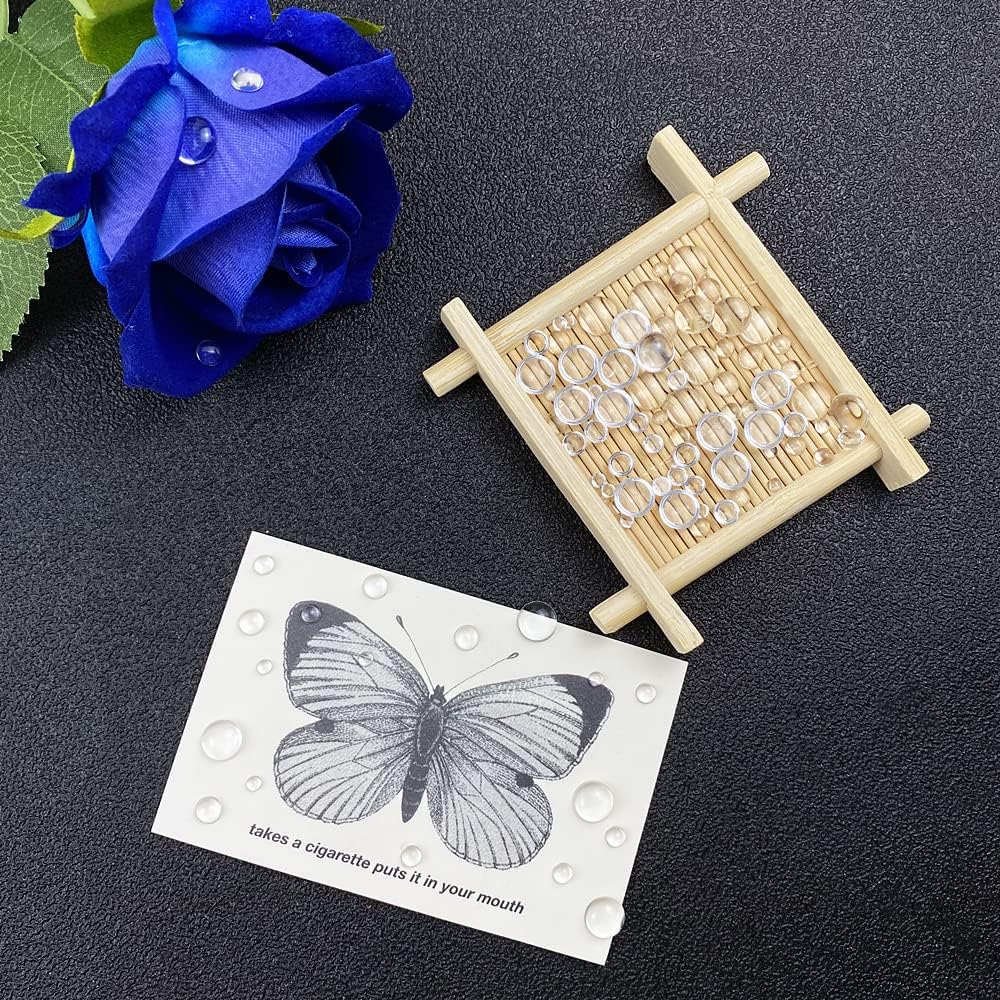 【Reliable Material】 Our small water droplets are made of high-quality resin material, bright and classic, lightweight, with high elasticity and good toughness, not easy to break or deform, durable and easy to stick on paper or cards with glue, suitable for all kinds of DIY projects.