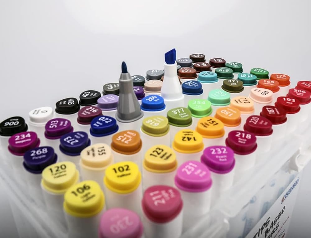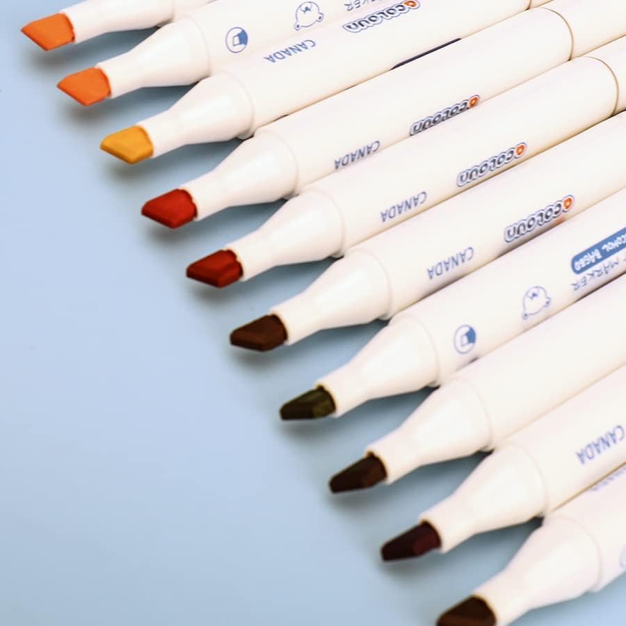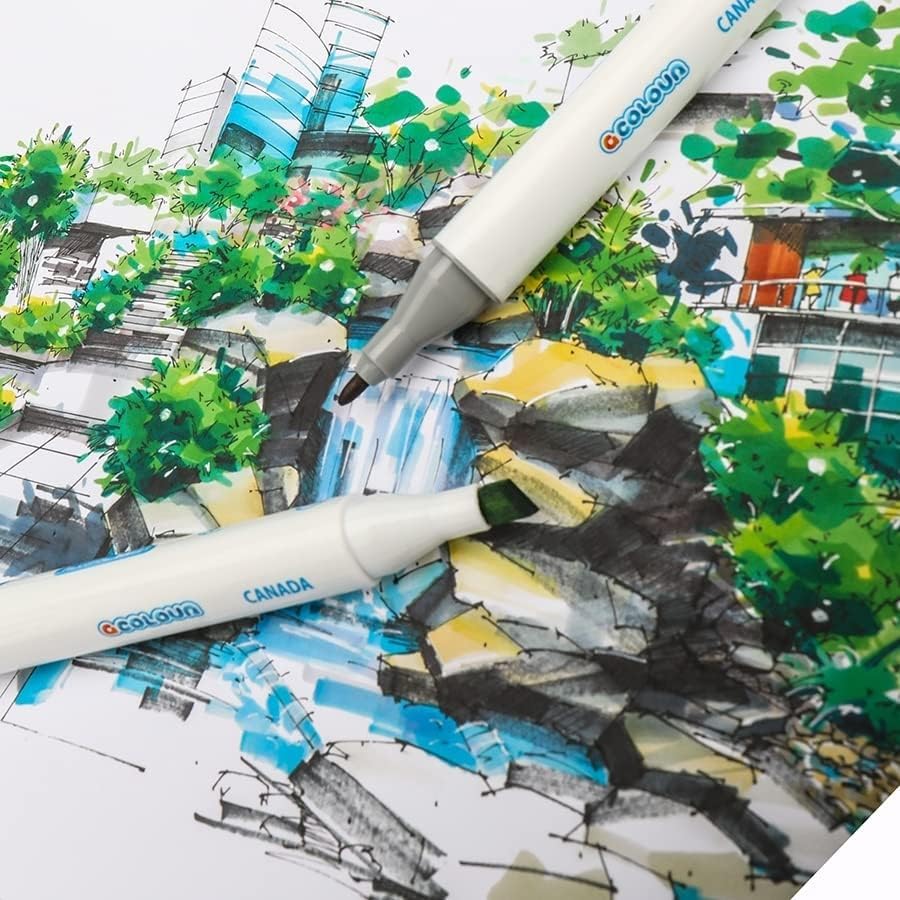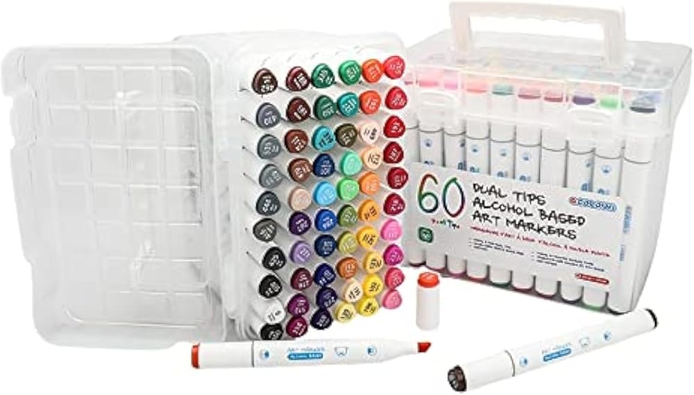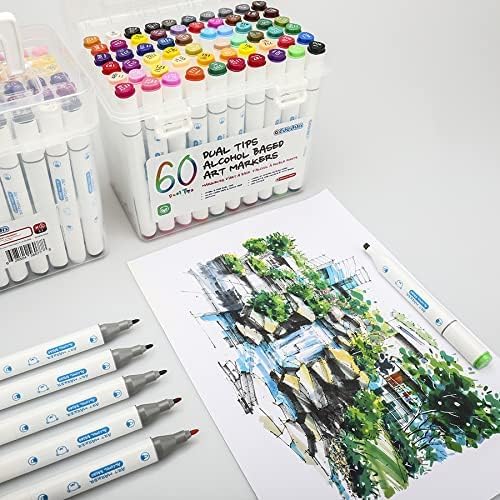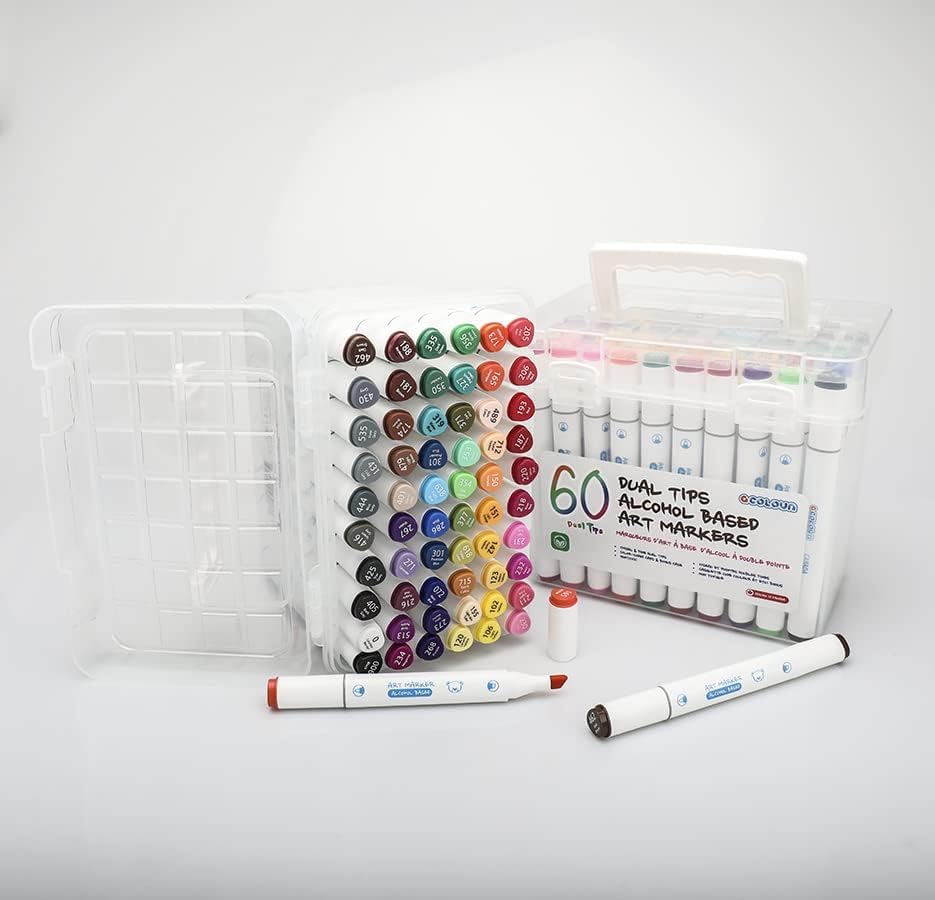 أقلام تلوين فنية مكونة من 60 لونًا -- مصنوعة من أقلام حبر كحولية ذات صبغة جريئة، والتي تتميز بألوان نابضة بالحياة مع التصاق قوي لتدوم لفترة أطول.